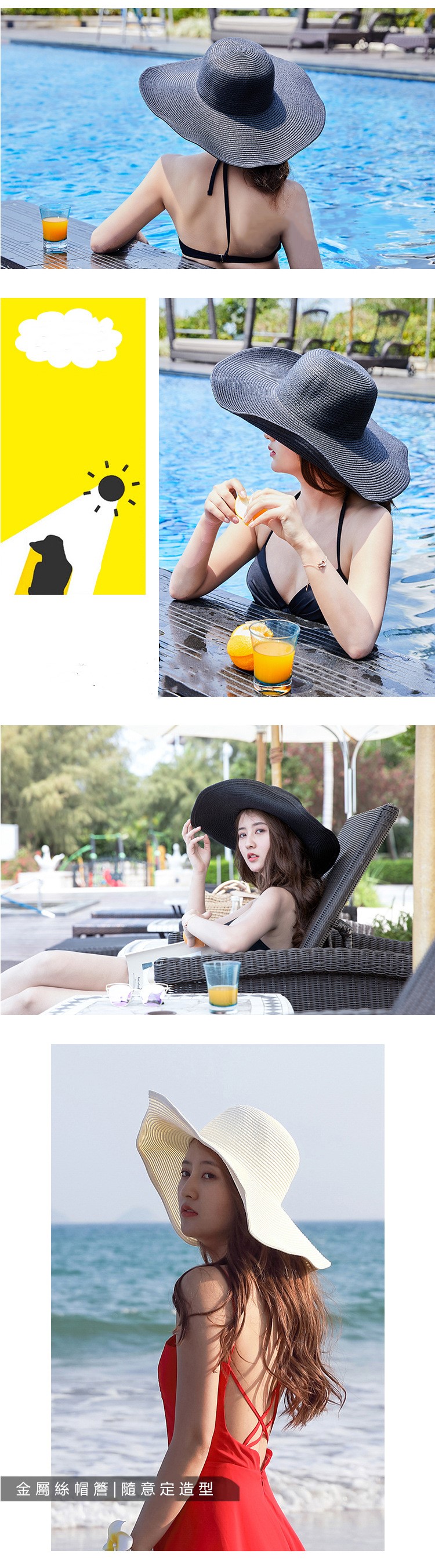 【超大帽簷】【隱形定型絲】【天然棉麻紙草】【手工編織】【超輕透氣】超大帽簷手工紙草編織遮陽造型旅行帽