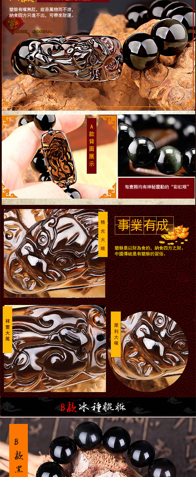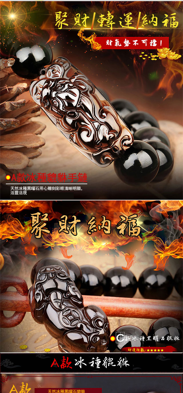 【烏金黑曜貔貅】5A招財辟邪烏金黑曜石貔貅手鍊