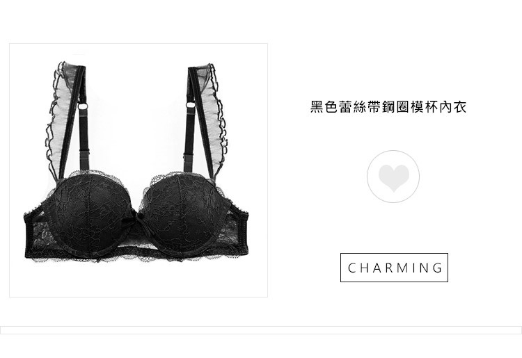 | 尺寸 | 32/70A配S尺碼內褲, 32/70B配S尺碼內褲, 32/70C配S尺碼內褲, 34/75A配M尺碼內褲, 34/75B配M尺碼內褲, 34/75C配M尺碼內褲, 36/80A配L尺碼內褲, 36/80B配L尺碼內褲, 36/80C配L尺碼內褲, 38/85A配XL尺碼內褲, 38/85B配XL尺碼內褲, 38/85C配XL尺碼內褲 |
