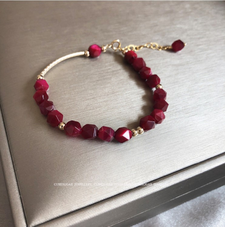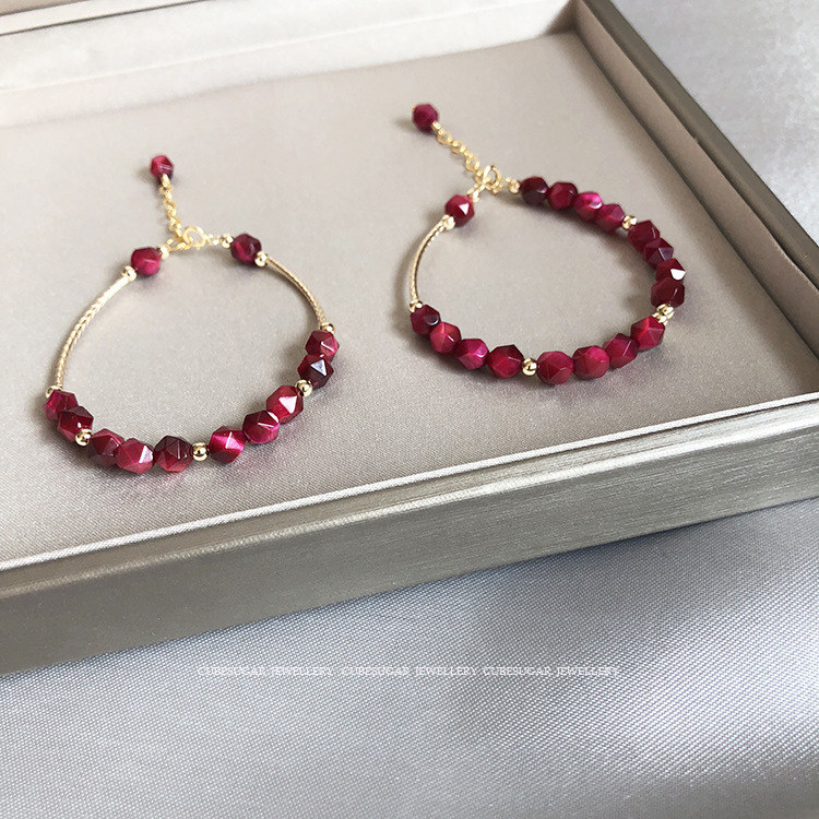 | 5A稀缺玫紅切面虎眼石 | 14K包金手環 | – | |