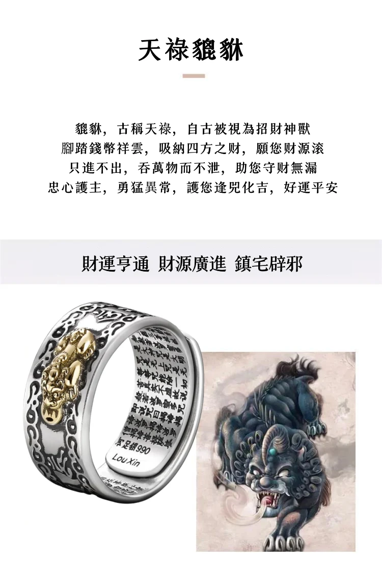 聚財納福 | 心經加持 | 999足銀招財貔貅戒指 | 內圈手雕護佑心經 | 外圈護身六字真言 | 2025足銀貔貅心經六字真言男女招財貔貅戒指