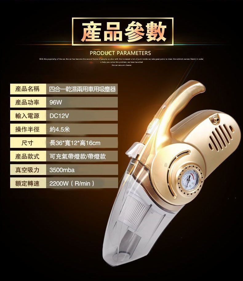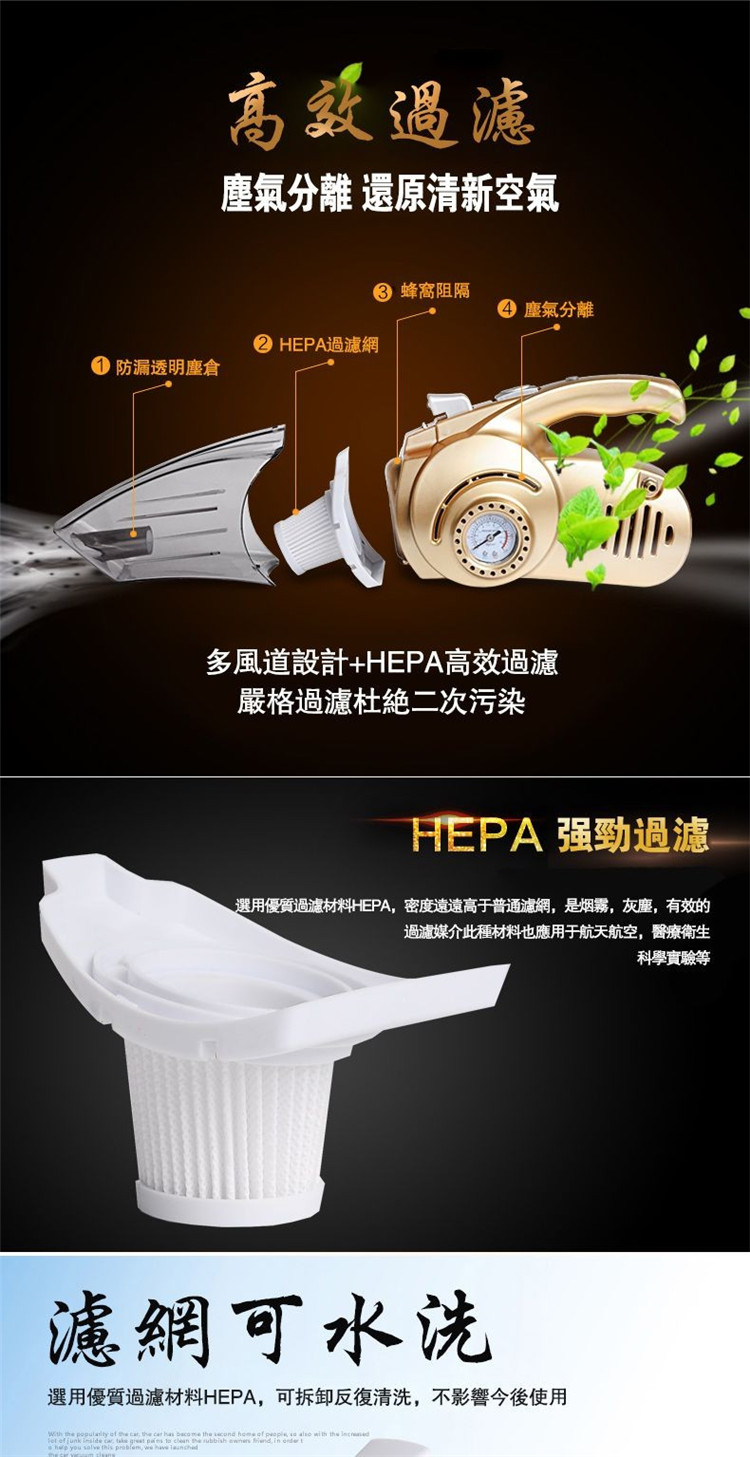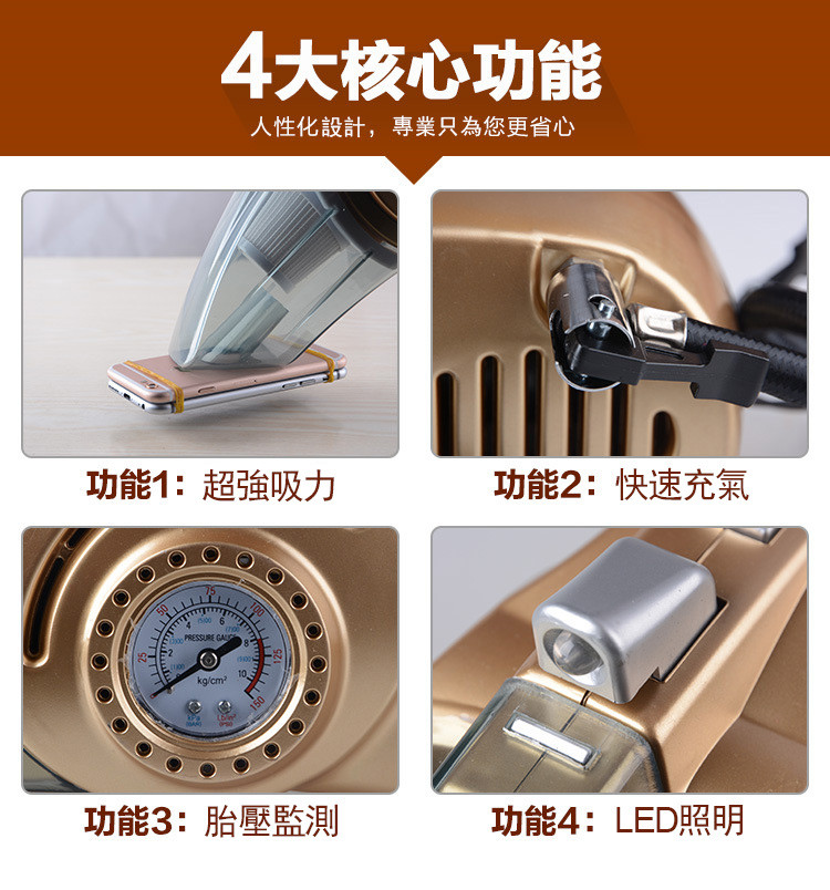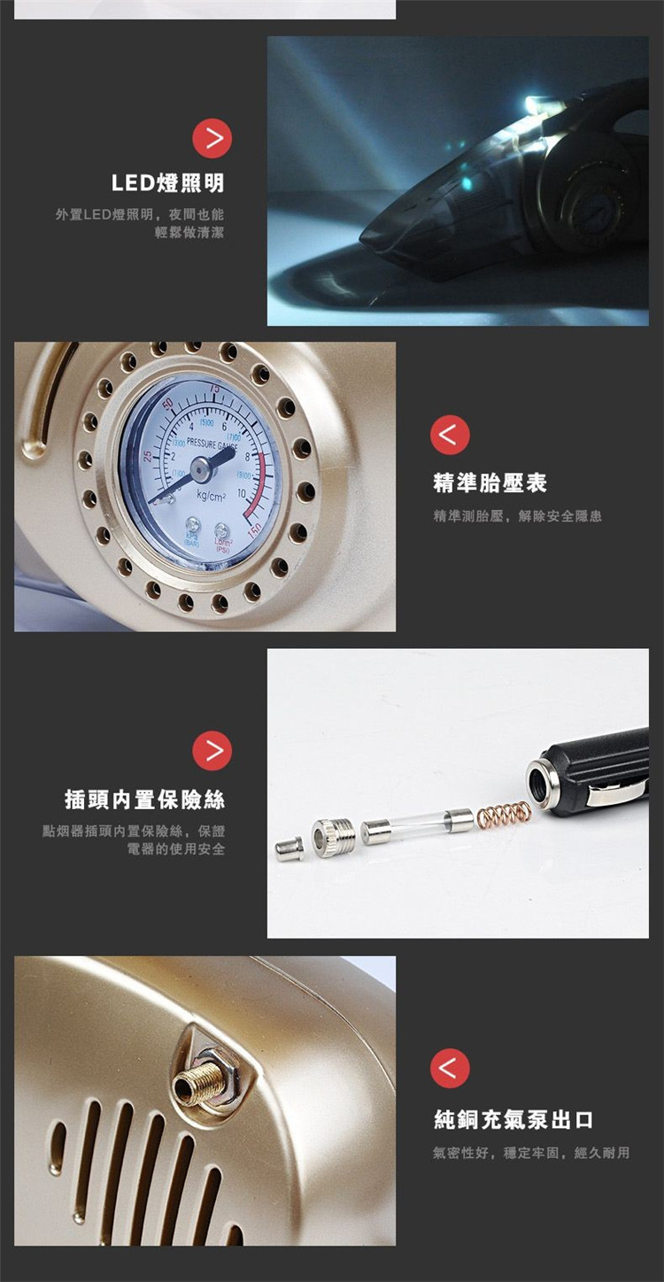【有線】【車用多功能胎壓監測充氣照明】車用大吸力多功能吸塵重啟測胎壓照明吸塵器