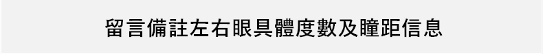 • 非平光鏡片留言備註左右眼度數及瞳距