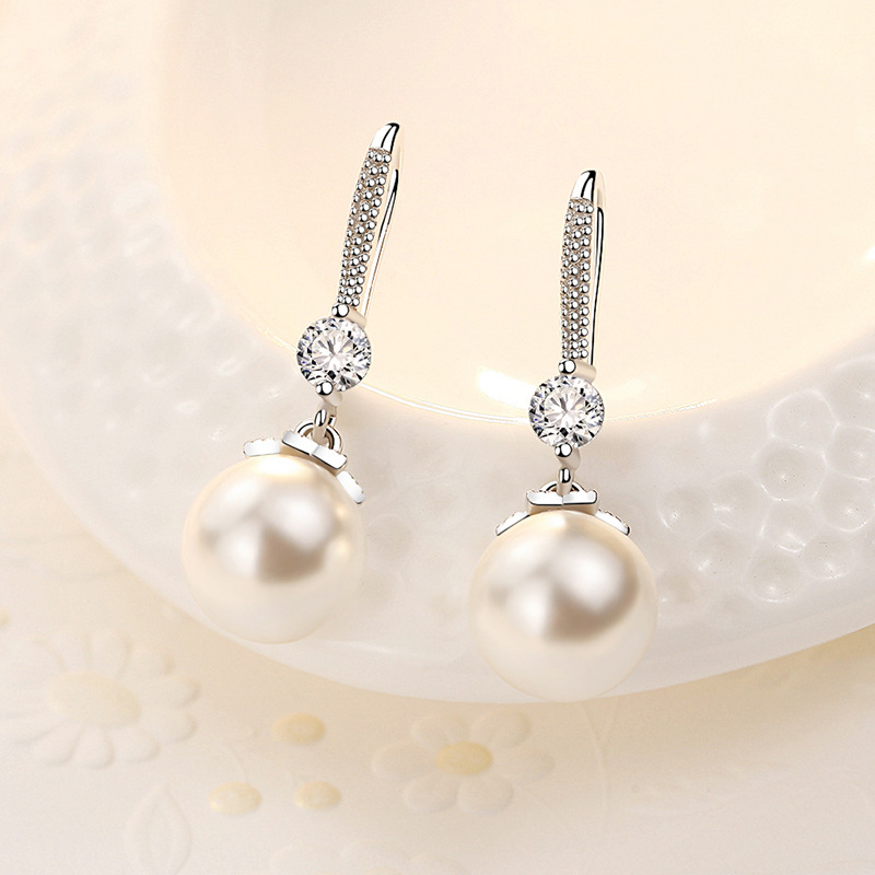 S925純銀鑲鋯鉆溫柔氣質珍珠耳飾女耳環耳墜網紅真銀耳釘耳環 (珍珠 925純銀)