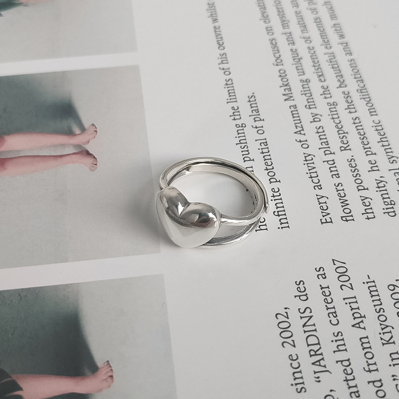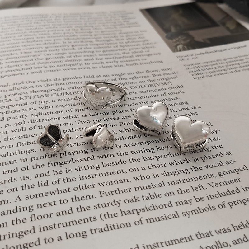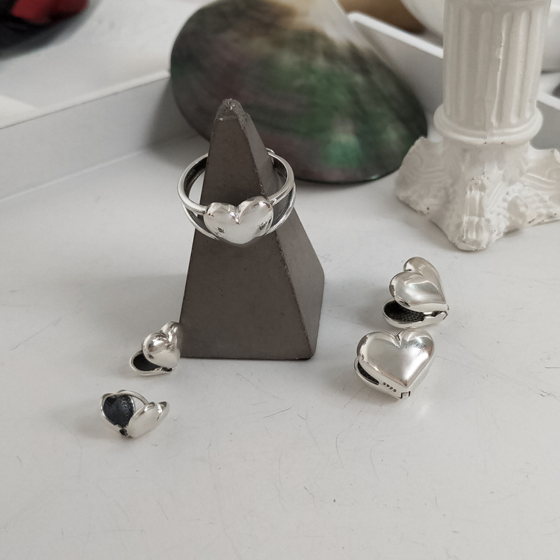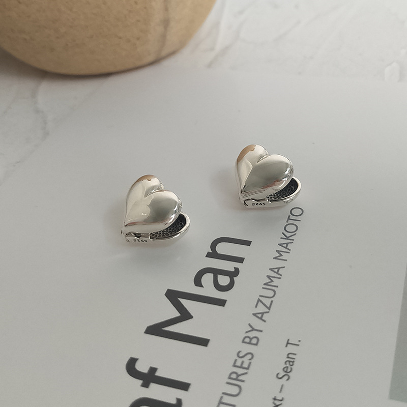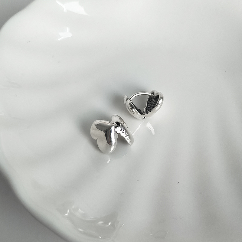 通體S925纯银小爱心耳釘耳環女簡約複古氣質百搭文藝時尚耳飾