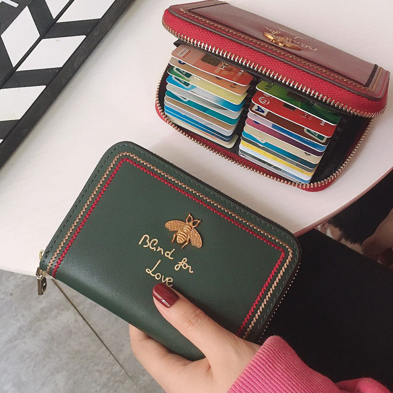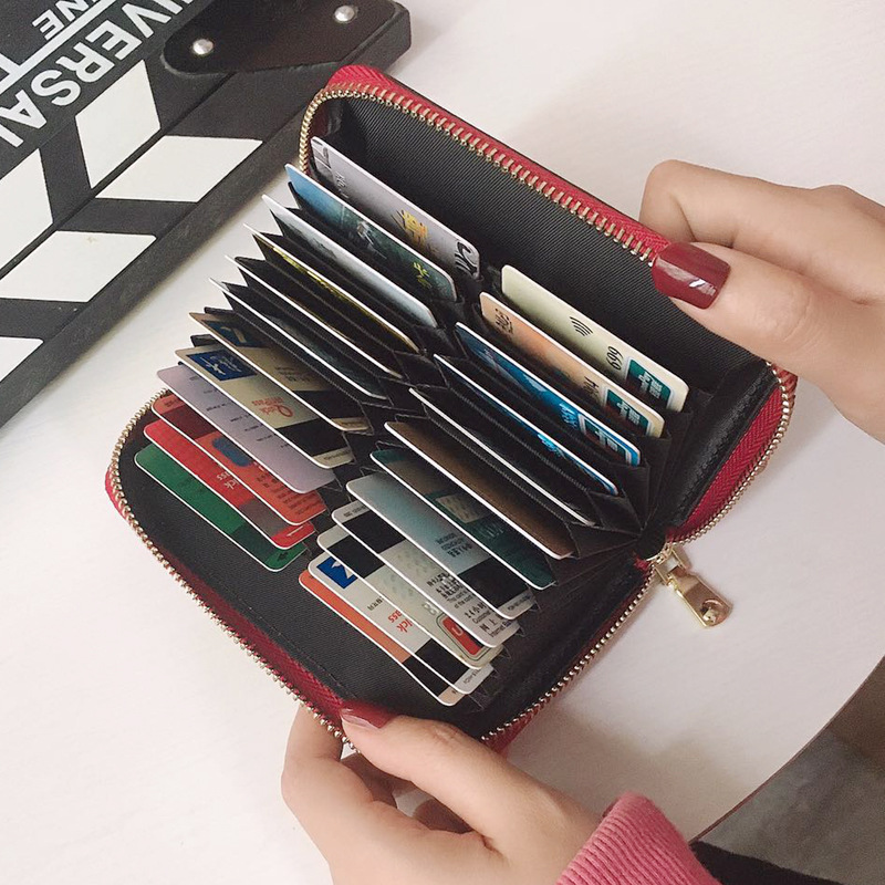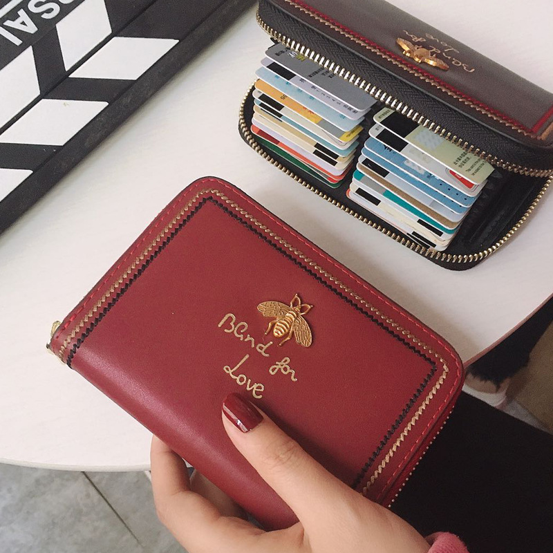 【文藝真皮牛皮短夾】【小巧多卡位防盜刷】高檔牛皮文藝清新純色車縫線防盜刷拉鏈女錢包皮夾短夾