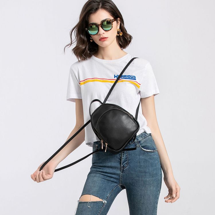 後背包輕便百搭複古防盜休閑防水質感皮料女小背包後背包 (黑色 18*6*21CM)