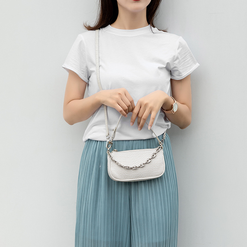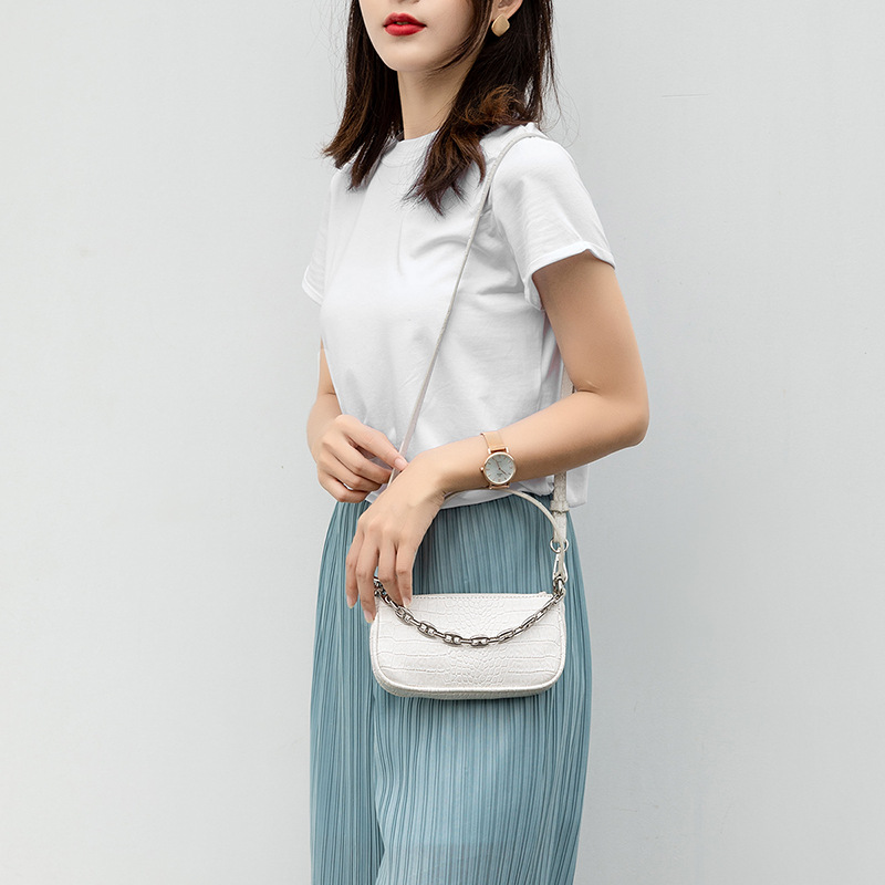 高級感輕奢鱷魚紋鏈條法棍包小包手提女包側背包 (米白)