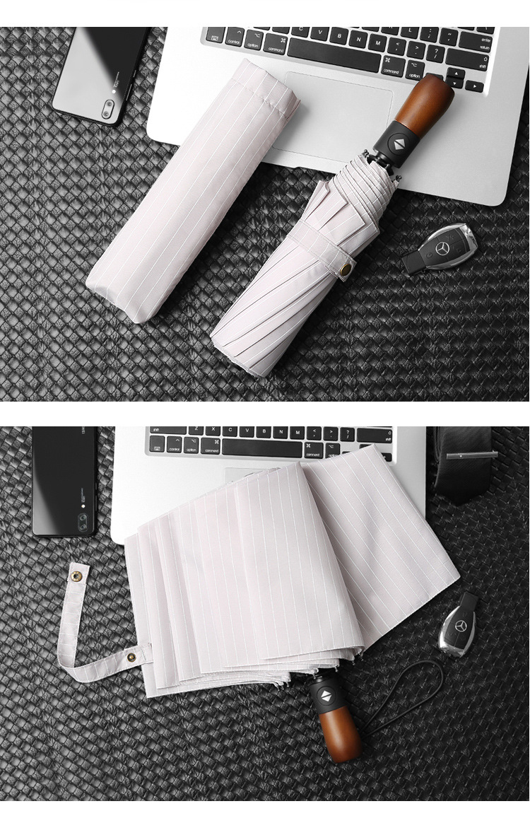 【日式實木手柄】【加固十骨防風】【三折自動傘】日式全自動高端德國實木手柄加固三折晴雨傘