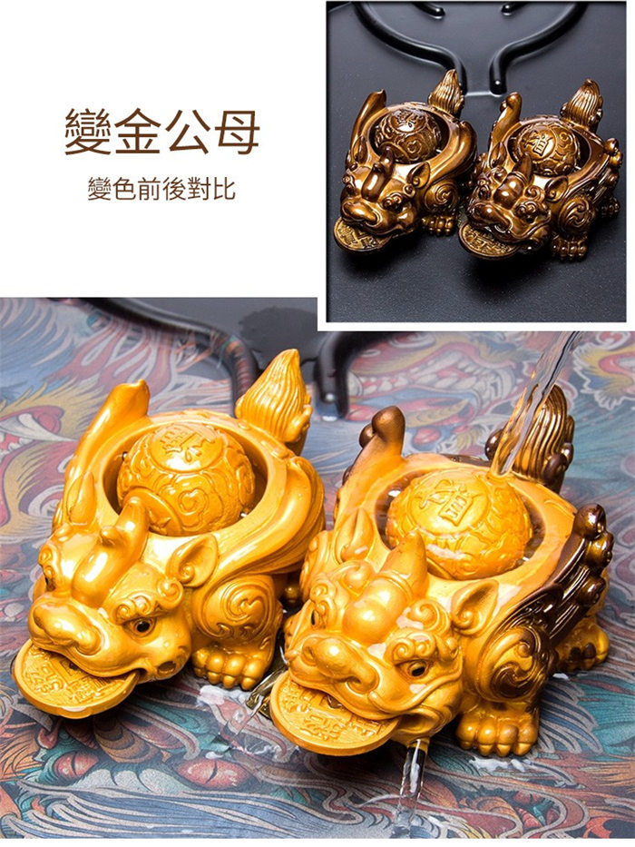 【一對入】【變色飛天貔貅】【進財滾珠】精品噴水變色背部滾珠口咬金錢飛天貔貅公母一對入