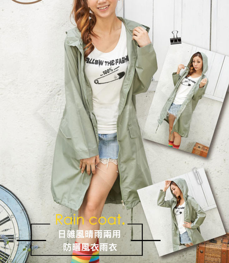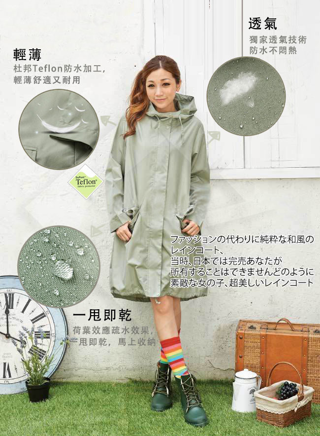 【晴雨兩用】【日式剪裁】【杜邦Teflon防水】日式女素色晴雨兩用透氣防水防曬兩用雨衣