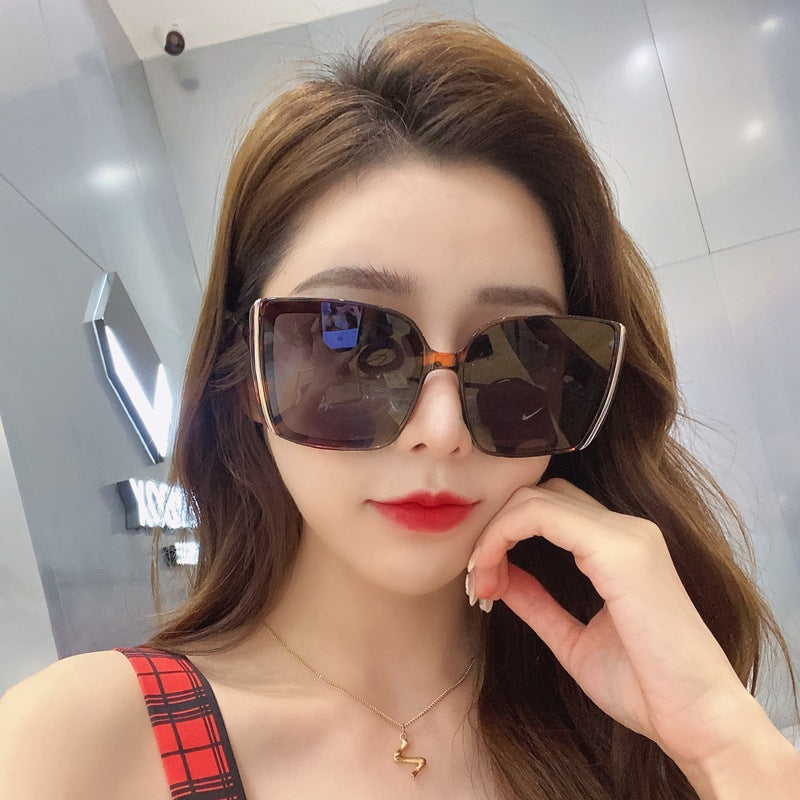 UV400韓版氣質百搭豹紋框太陽眼鏡方框防藍光大框顯瘦UV阻隔墨鏡