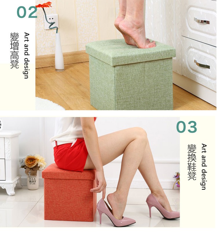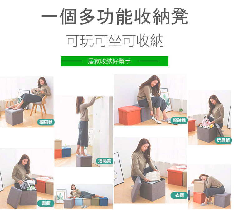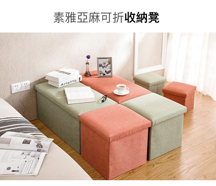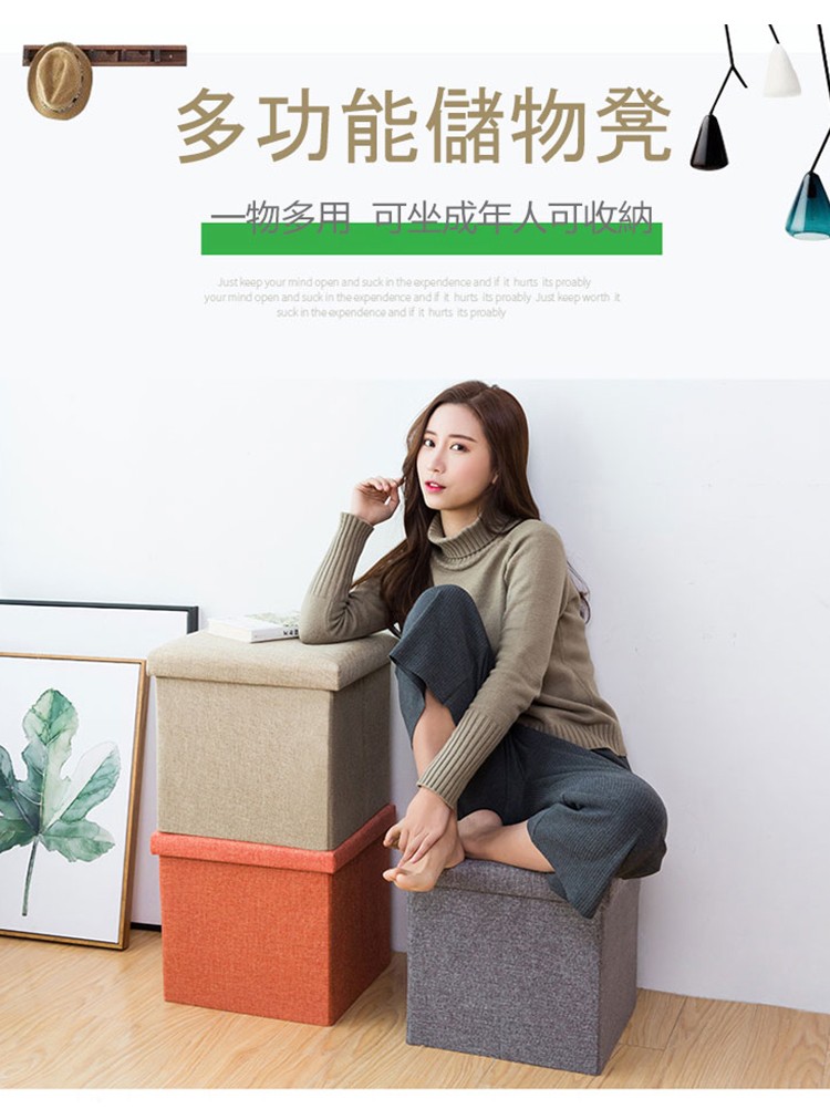 【二入】【日式多功能儲物收納凳】日式簡約素色麻布多功能儲物收納凳