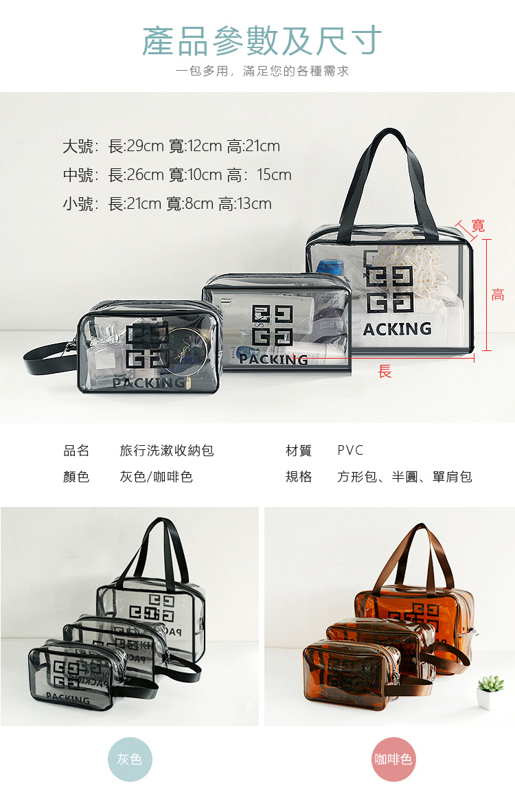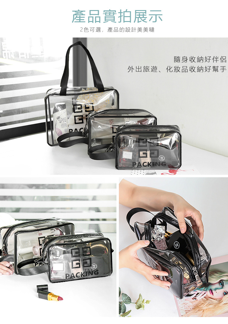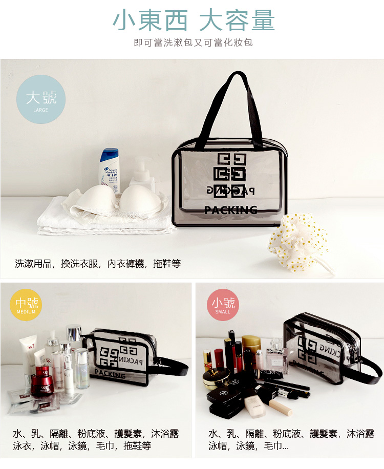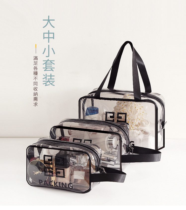 【大中小三件套組】【透明可視】韓版時尚透明可視PVC大中小三件套組旅行化妝品收納包