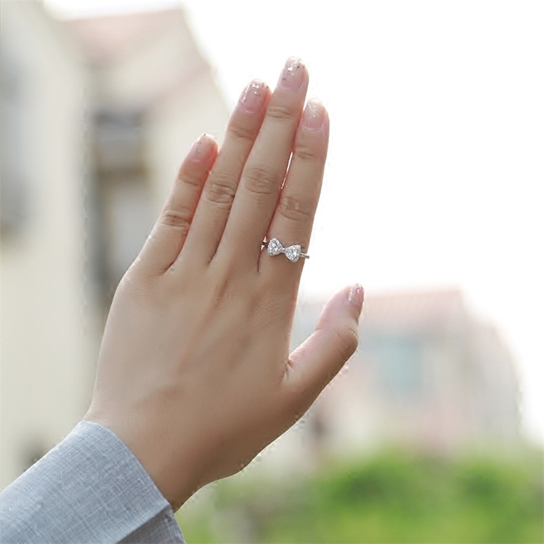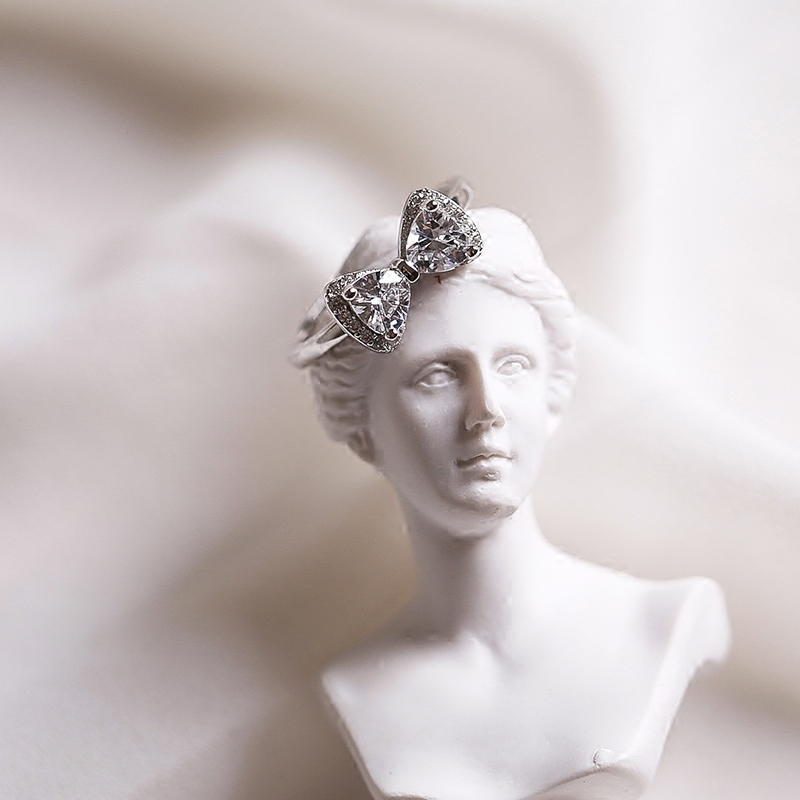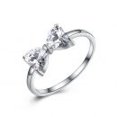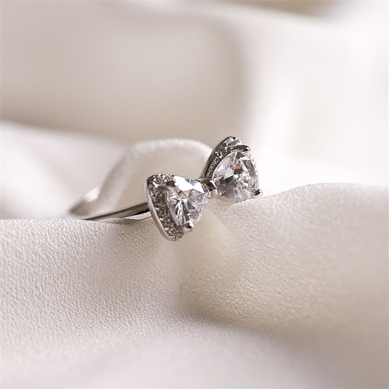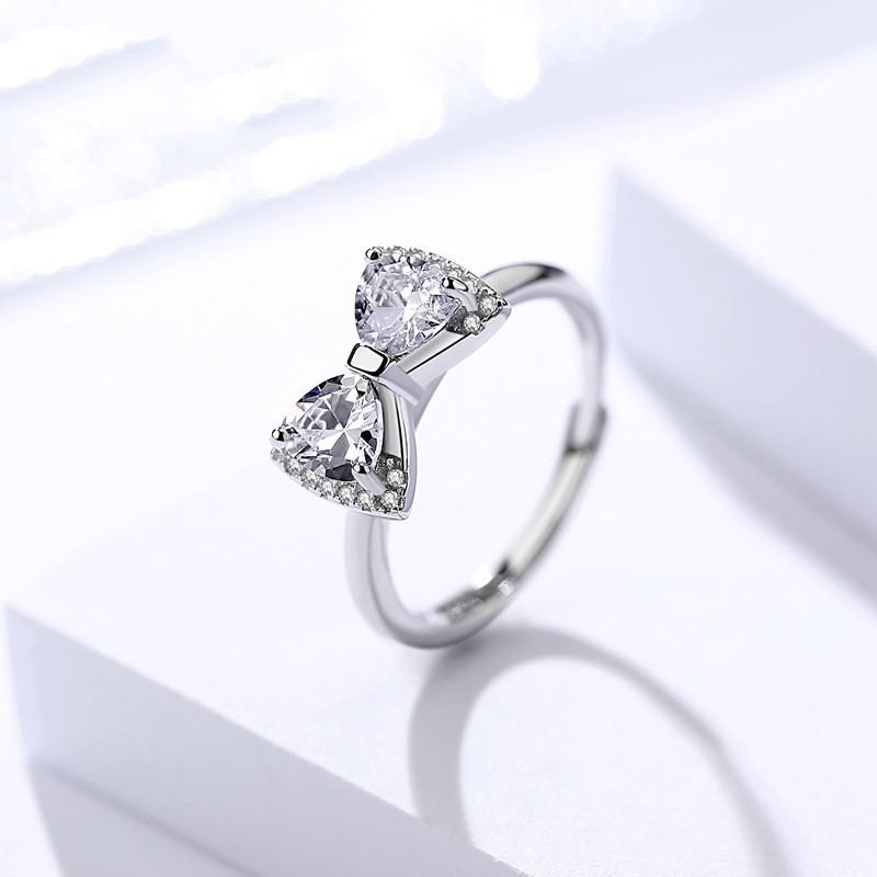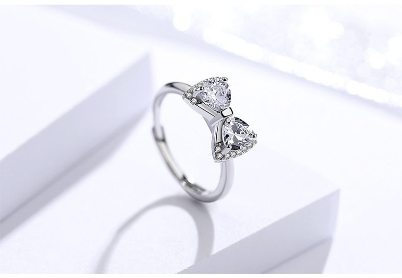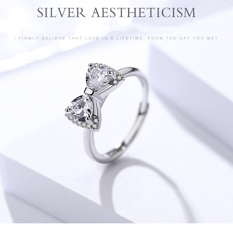 【蝴蝶結】韓國超甜蝴蝶結元素s925純銀電鍍白金鑲AAA級真火彩鋯鉆開口戒指