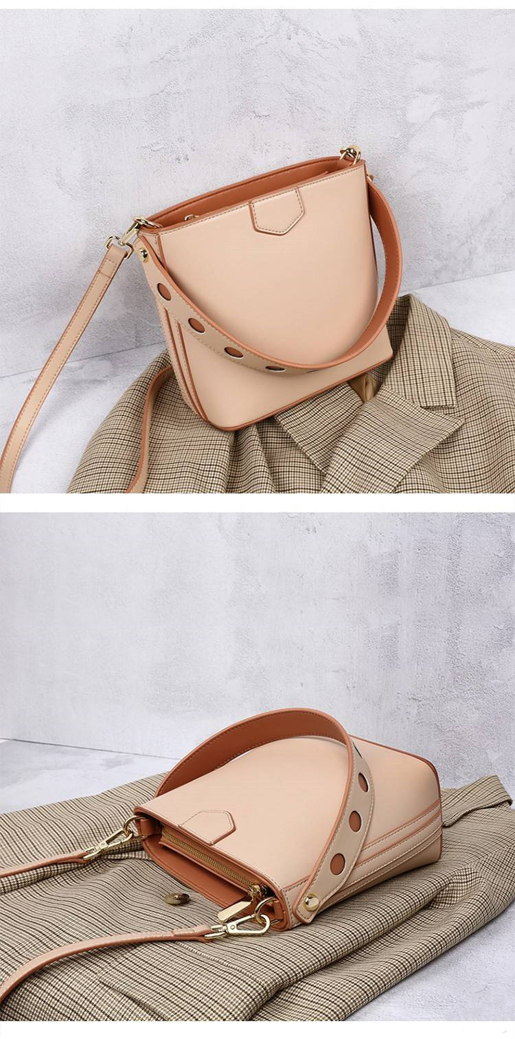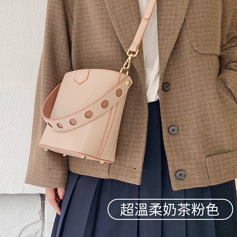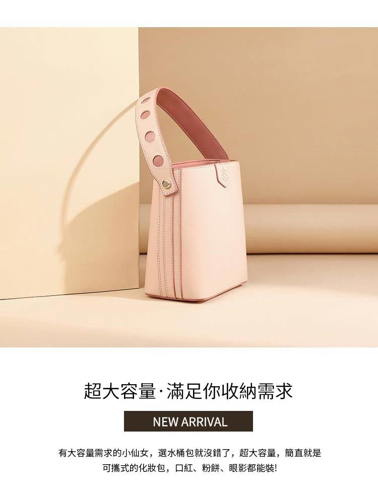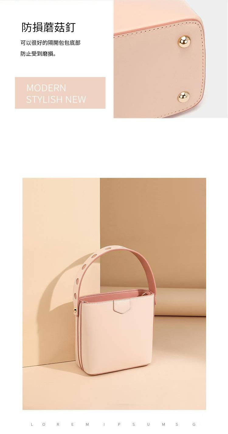 【奶茶橘子水桶包】溫柔拼色大容量多功能女包水桶包手提側背斜背包