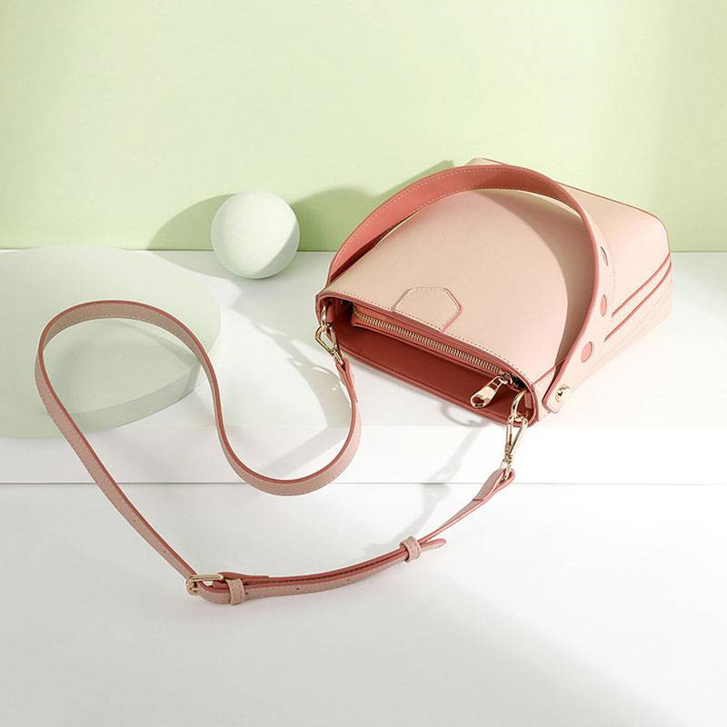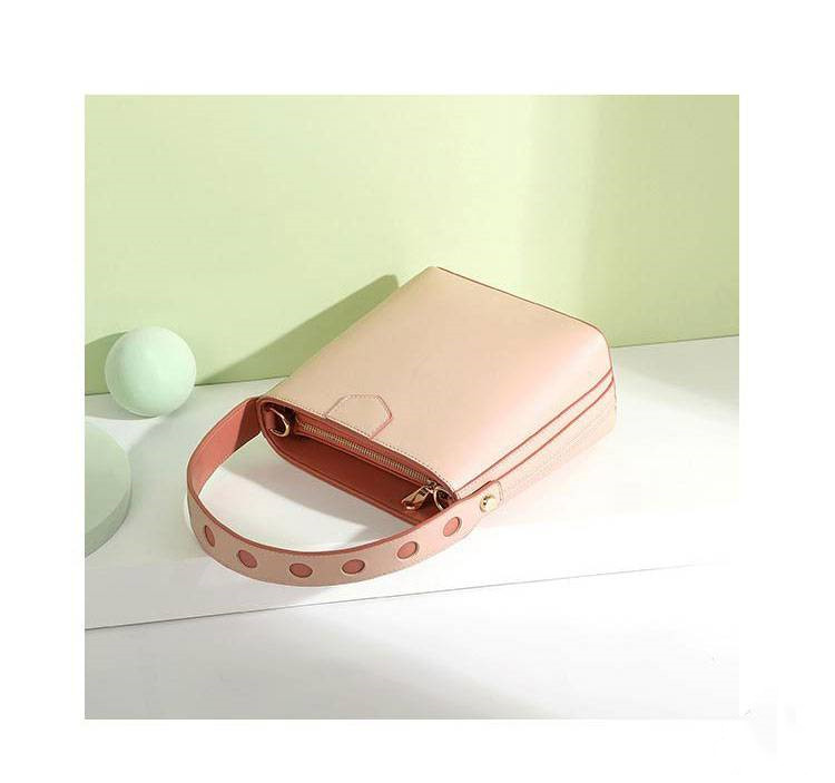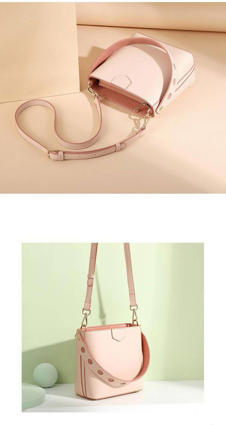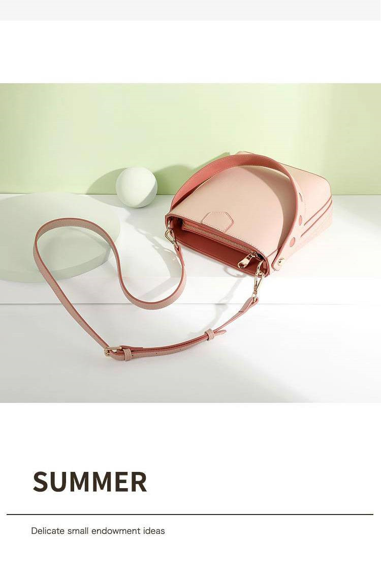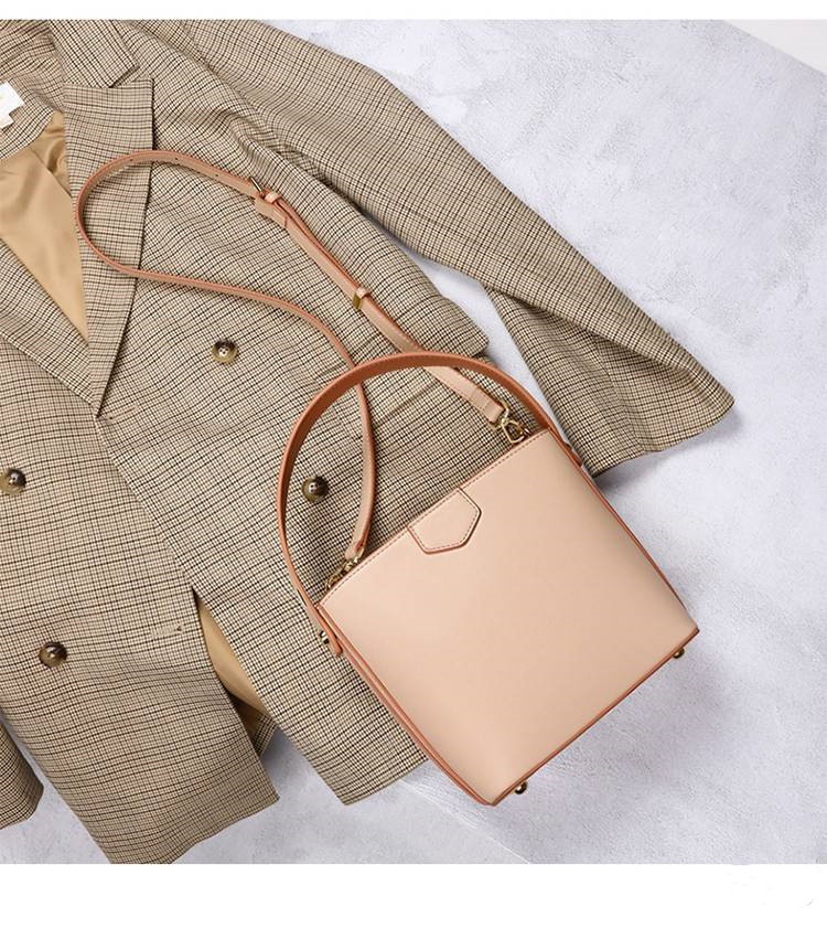 【奶茶橘子水桶包】溫柔拼色大容量多功能女包水桶包手提側背斜背包