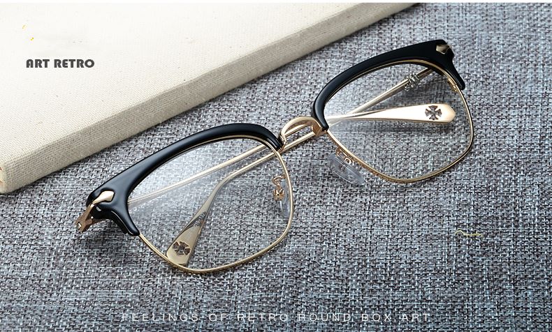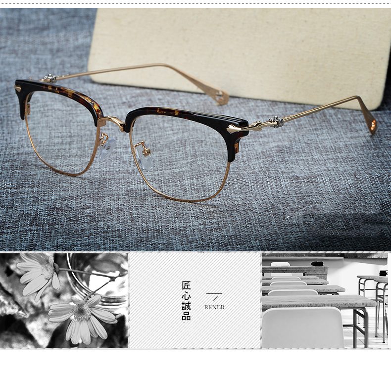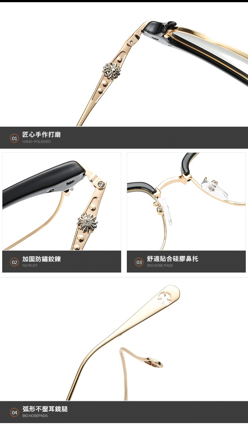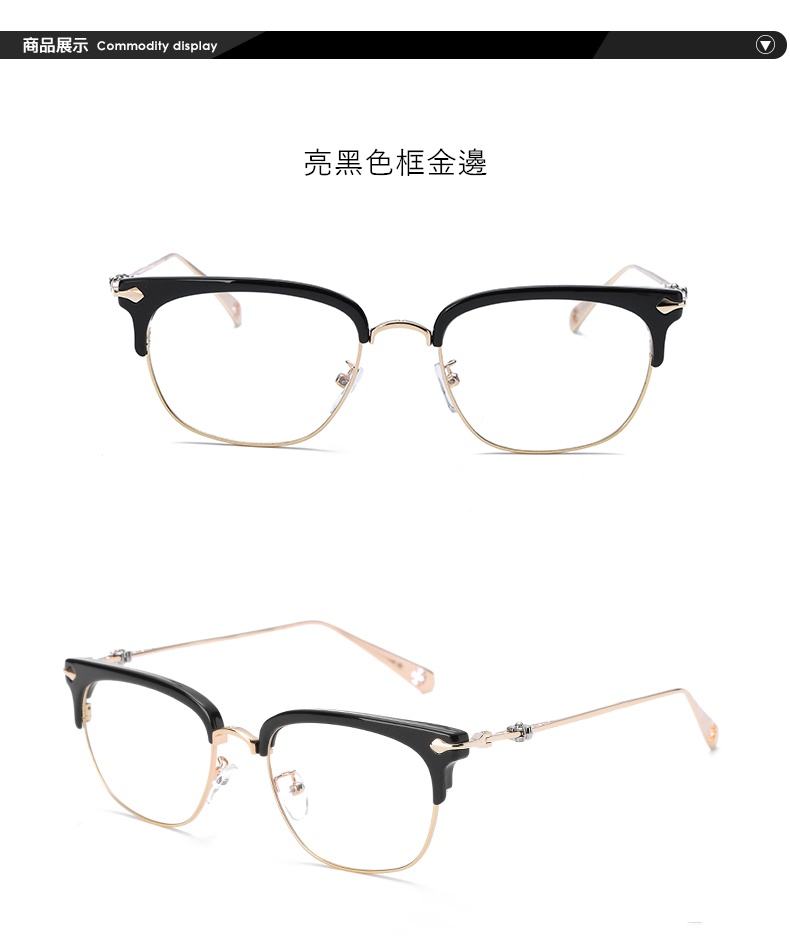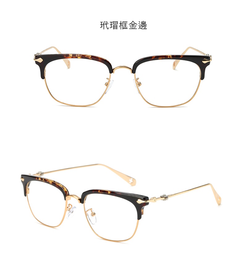 【可配近視鏡片】【明星同款】新潮流復古高檔黑框金邊明星同款防輻射光學眼鏡
