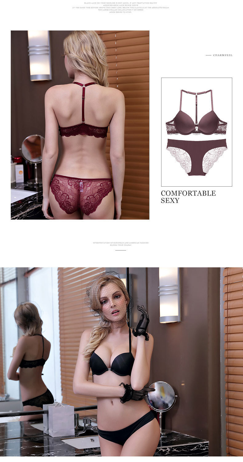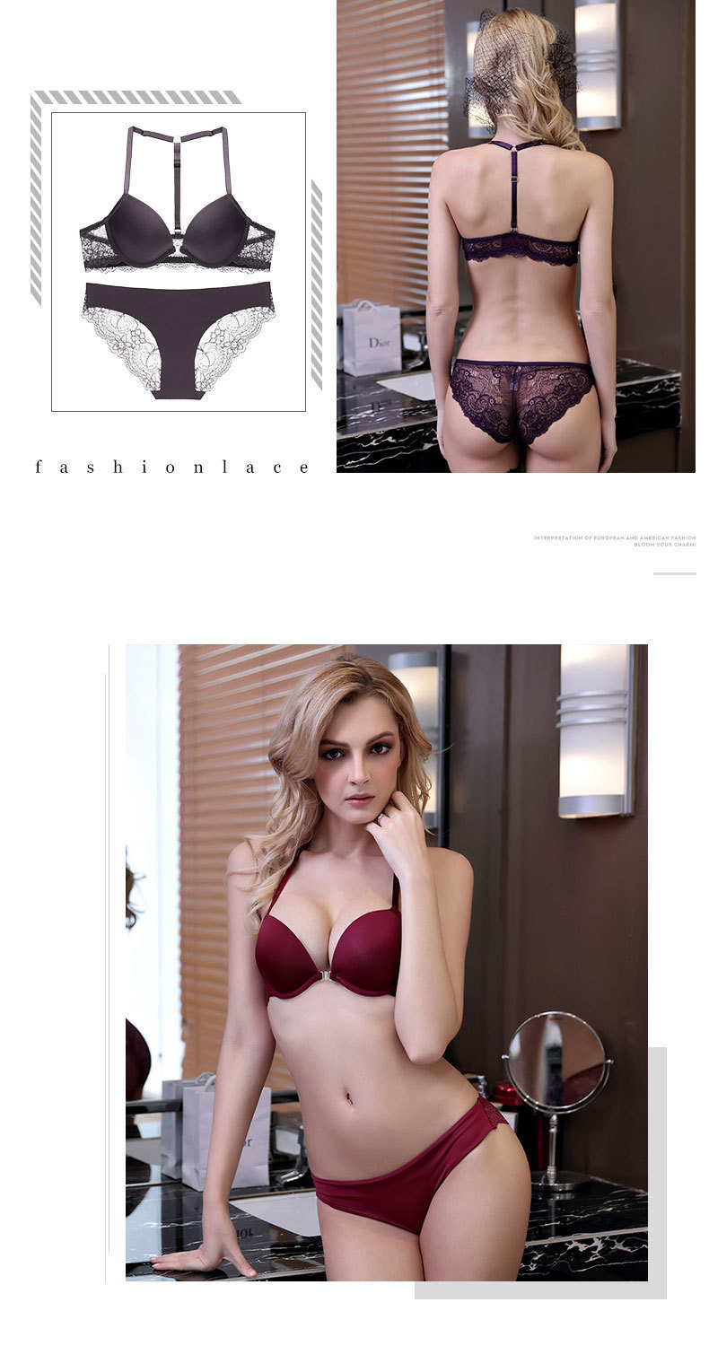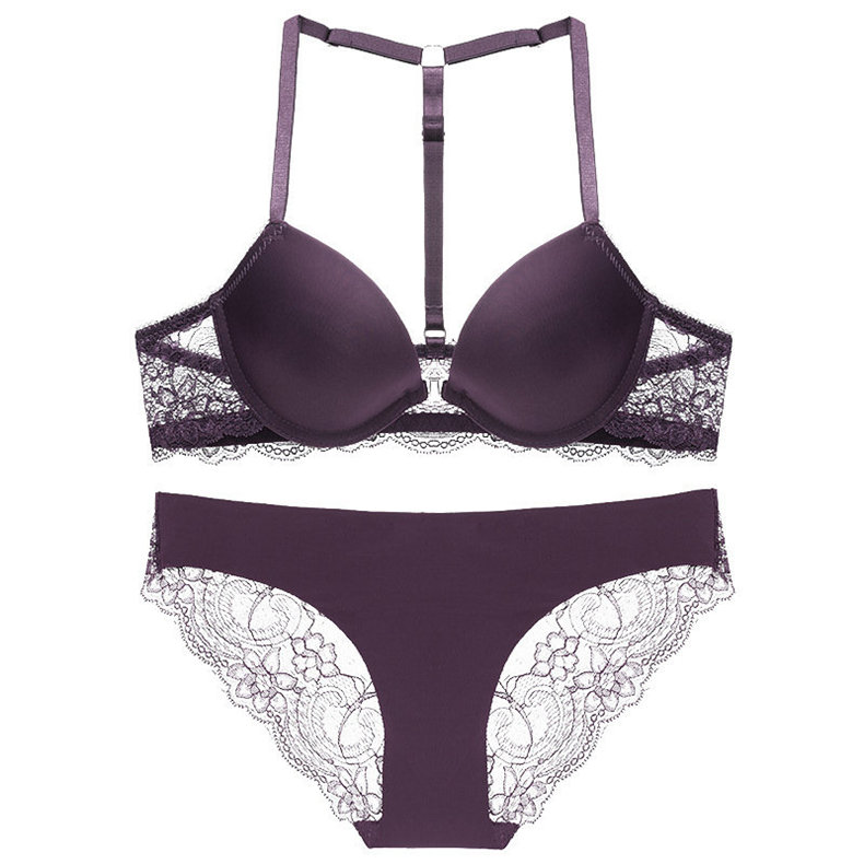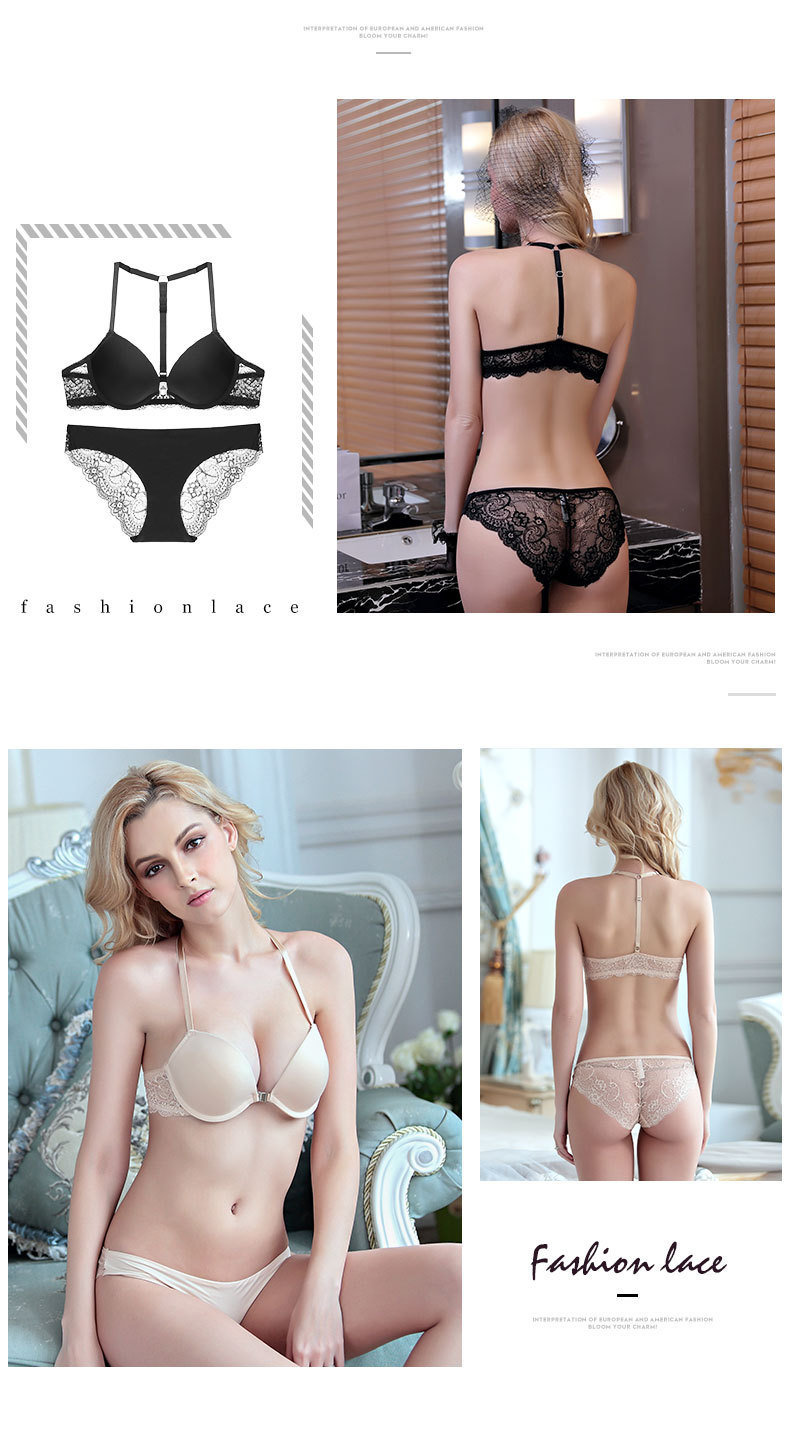 【聚攏半球杯】性感Y型前釦美背真絲質感柔滑光面上薄下厚立體杯蕾絲內衣
