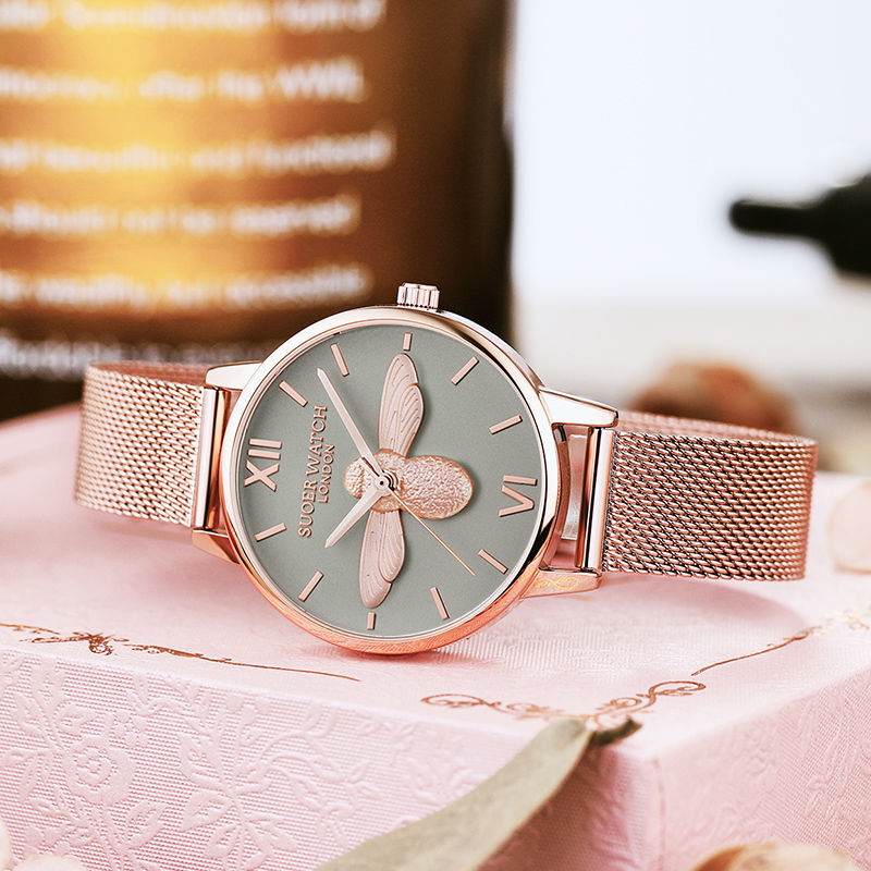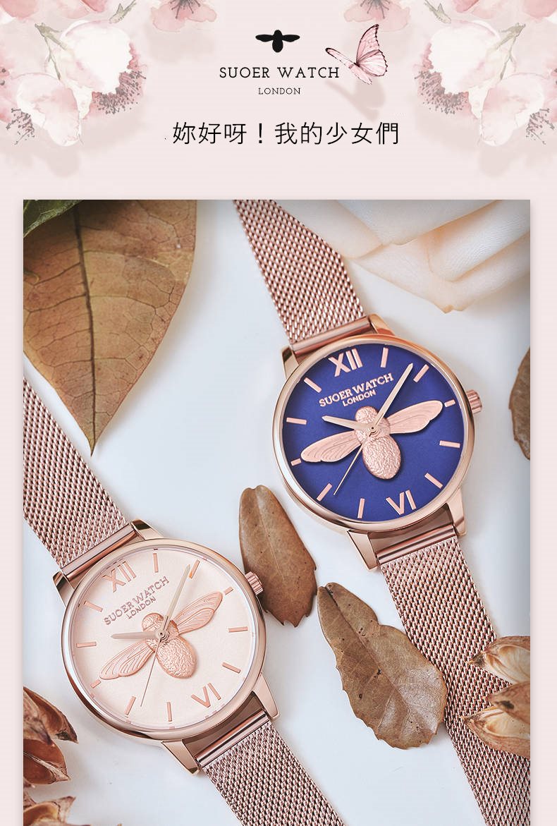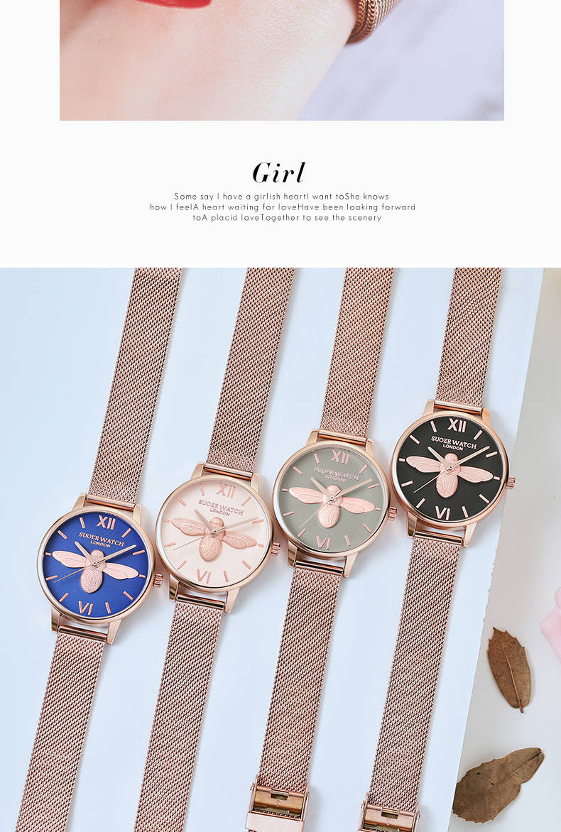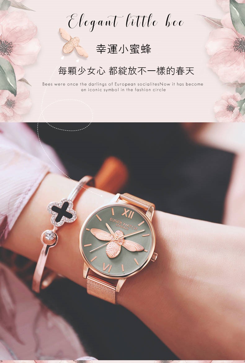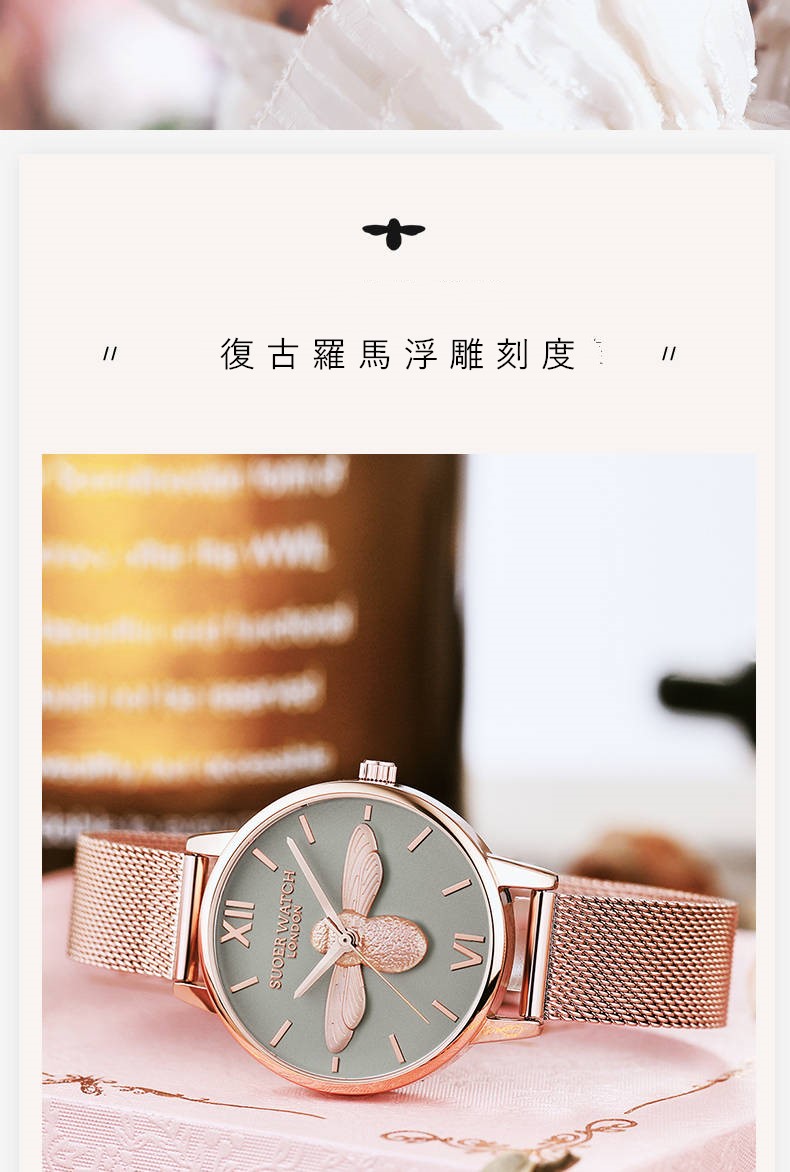 【London小蜜蜂錶】【明星同款】減齡百搭復古英倫浮雕小蜜蜂防水羅馬腕錶