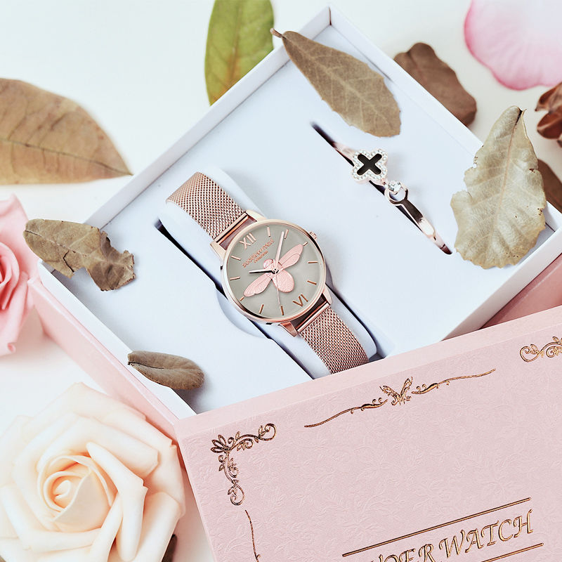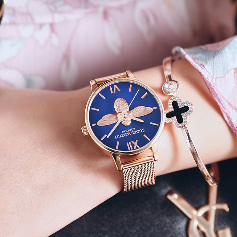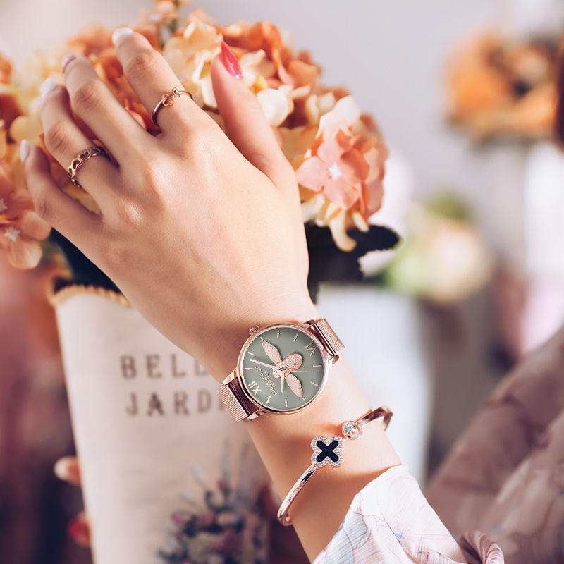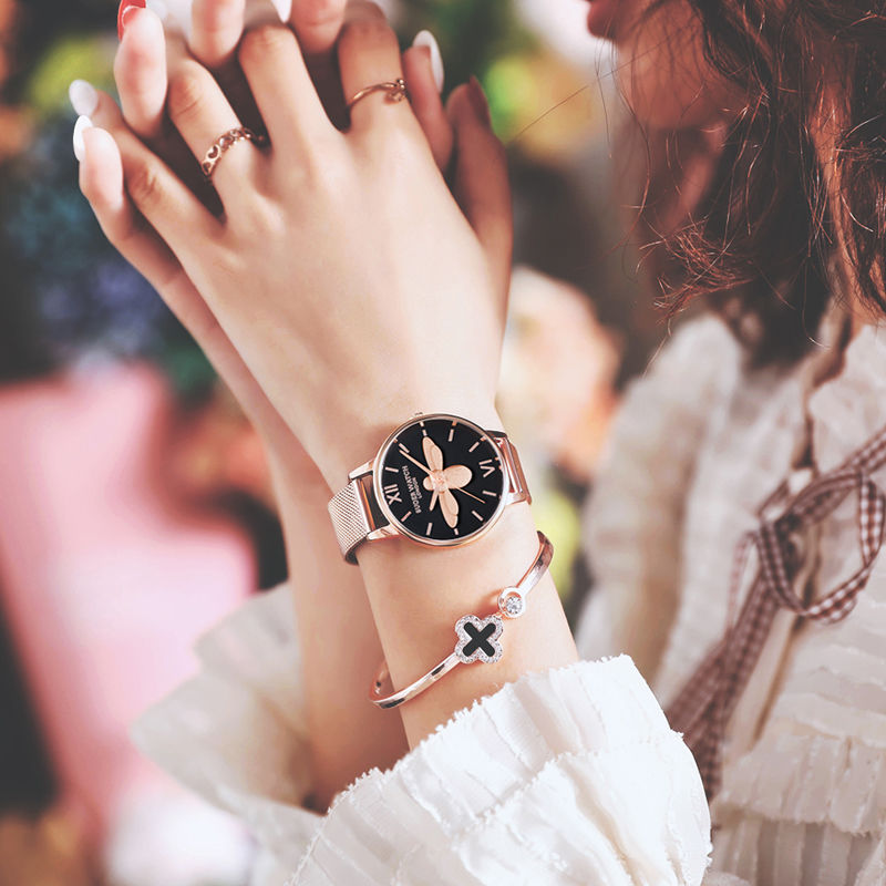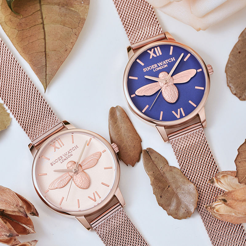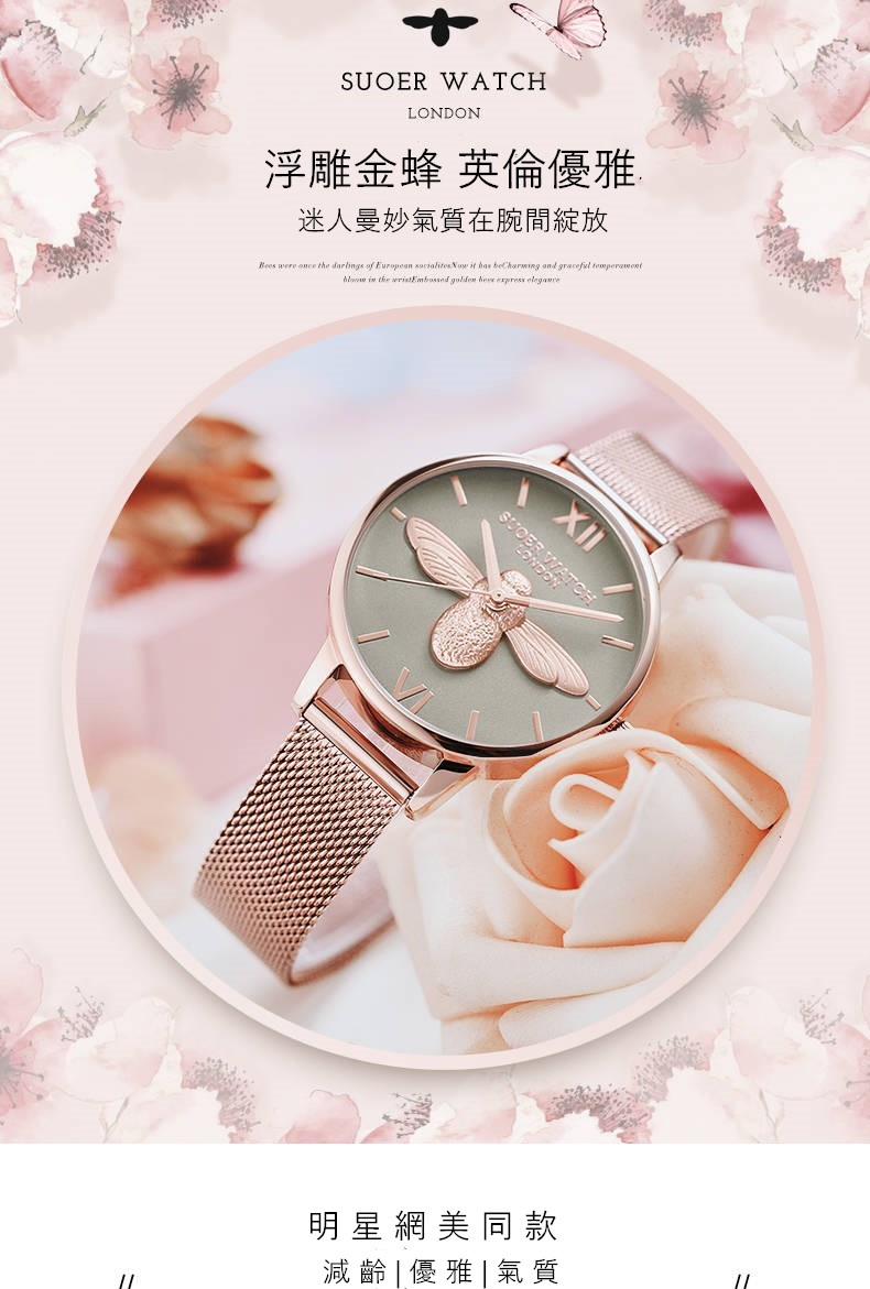 【London小蜜蜂錶】【明星同款】減齡百搭復古英倫浮雕小蜜蜂防水羅馬腕錶