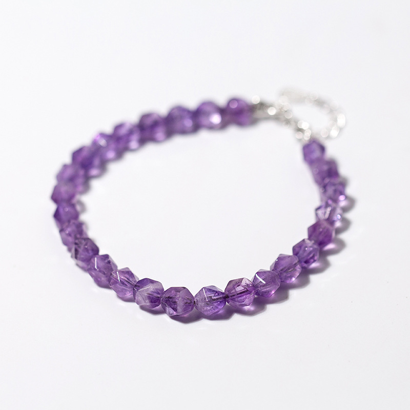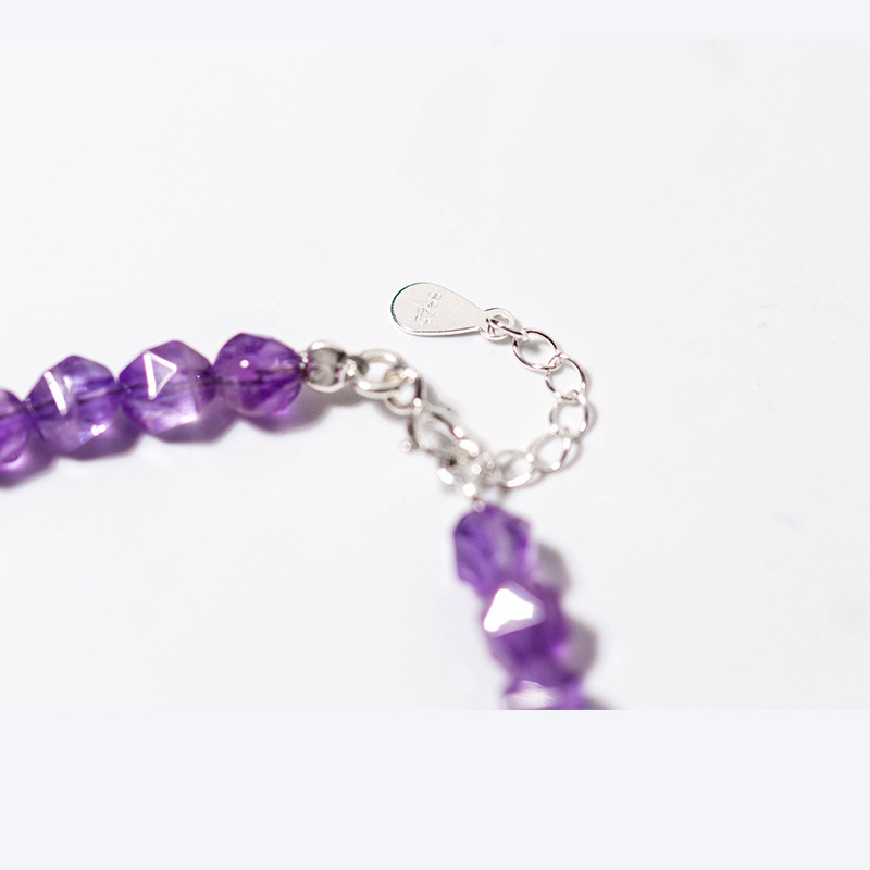 | 品名 | 夢幻切面紫水晶純銀串珠手鍊 |