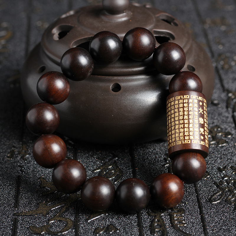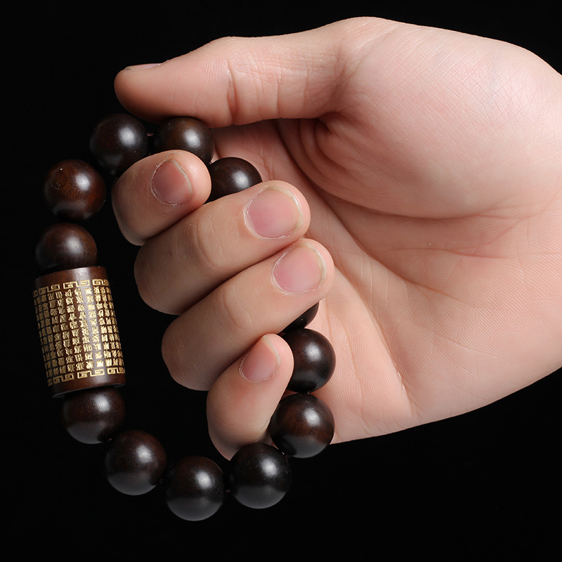【雷擊棗降龍木】【大悲咒心經】極品正圓雷擊棗木陰陽降龍木手雕大悲咒心經桶珠佛珠手串
