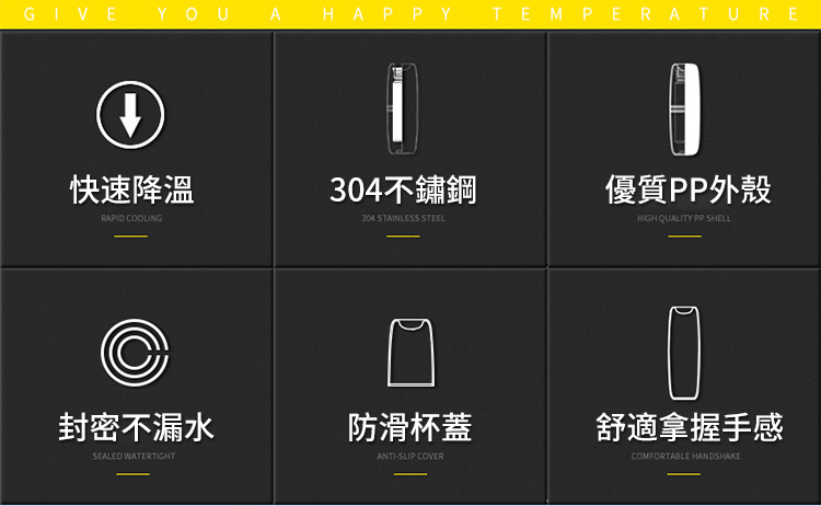 | 產品功能 | 60秒快速降溫,三小時保溫,舒適握感 |