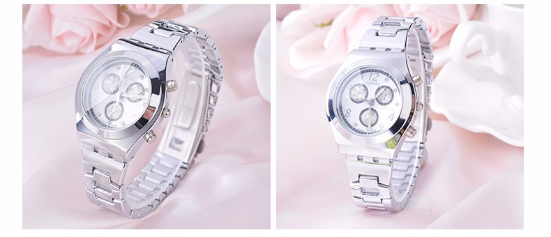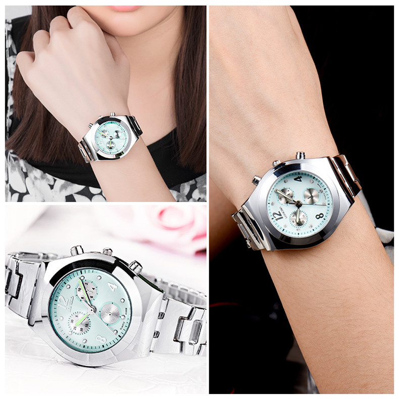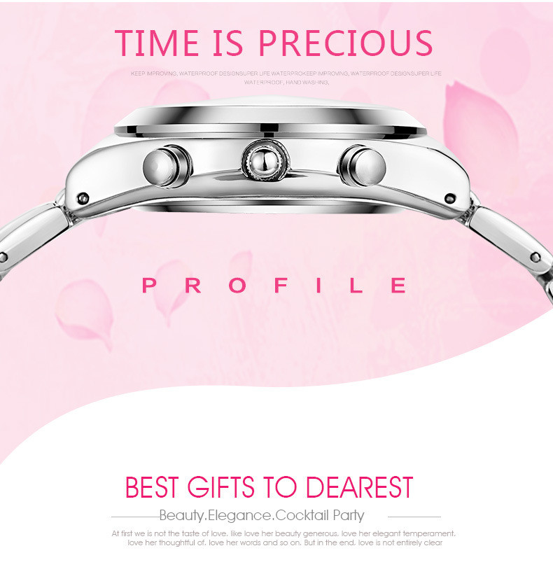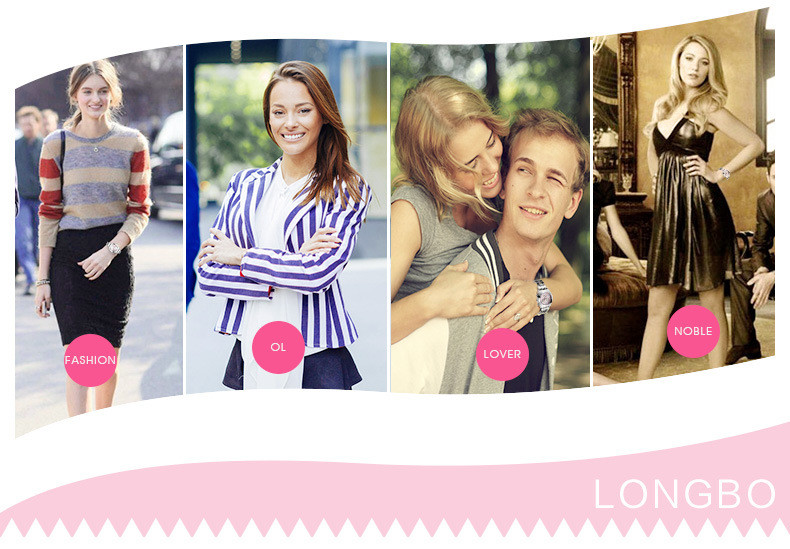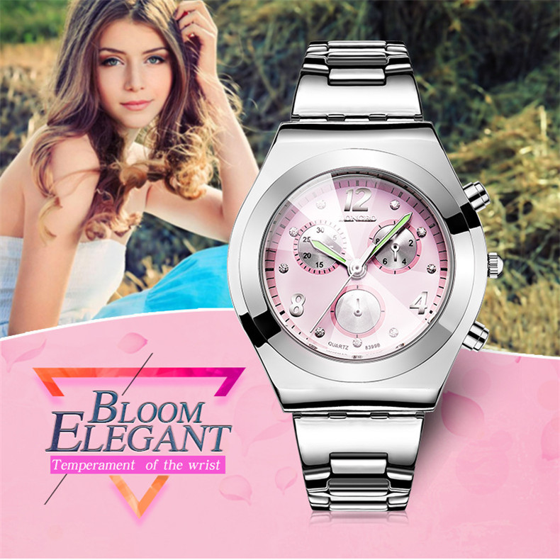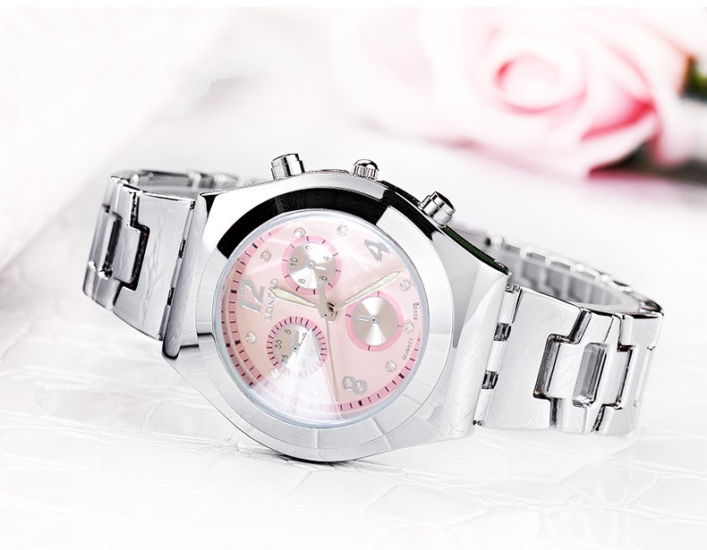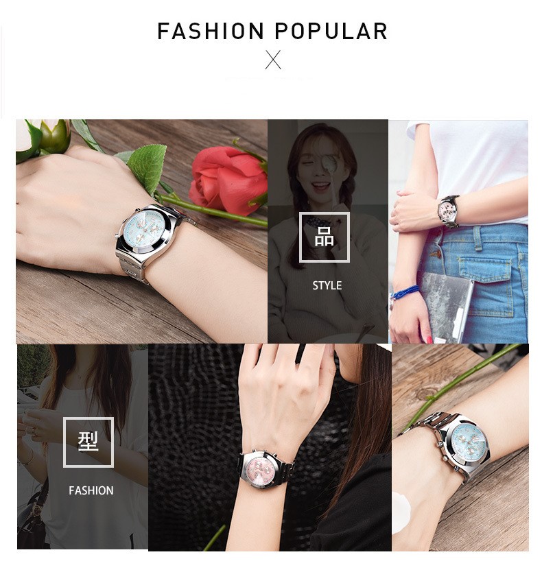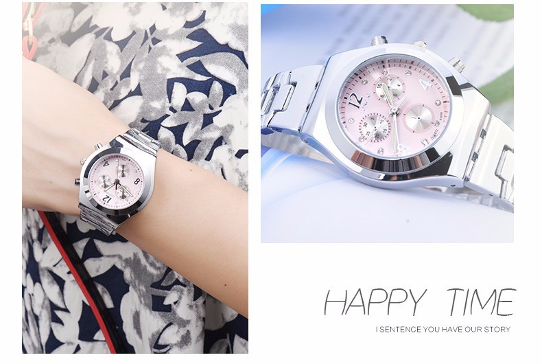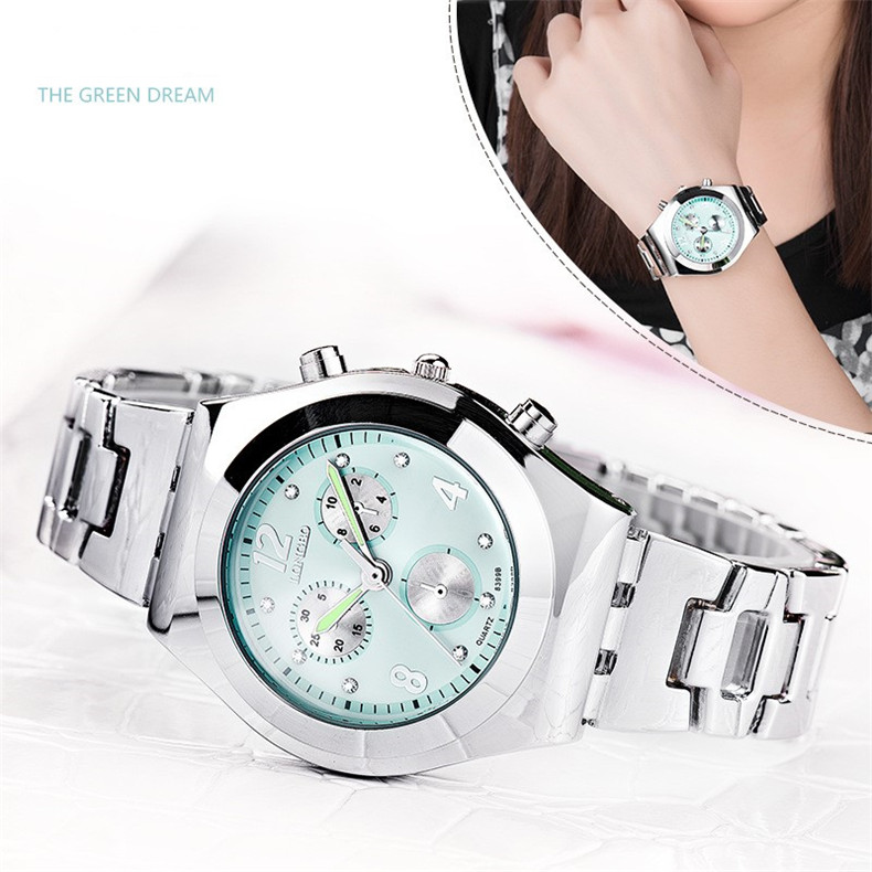 【鑲鑽三眼時裝錶】LONGBO歐美風格時尚優雅鑲鑽三眼夜光防水精鋼錶帶時裝錶