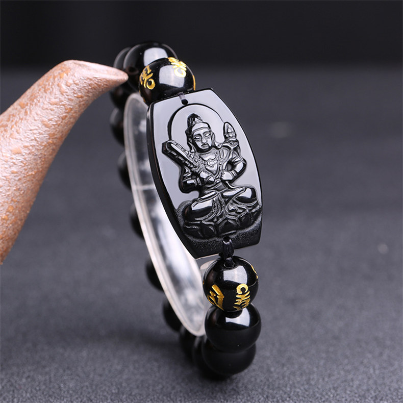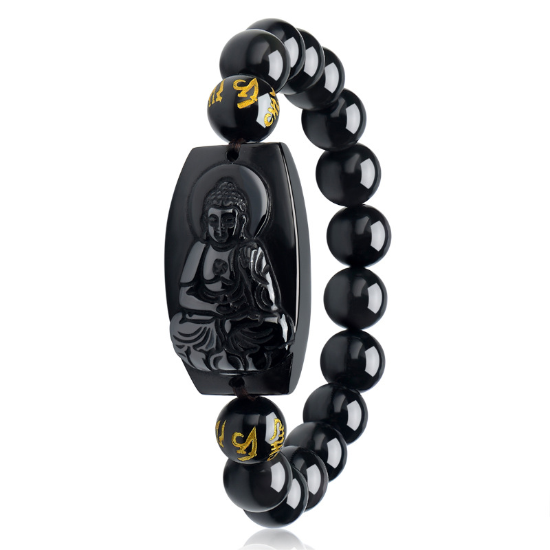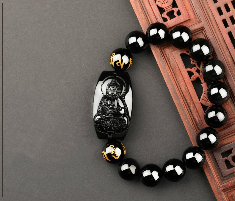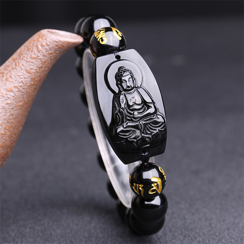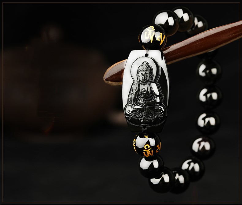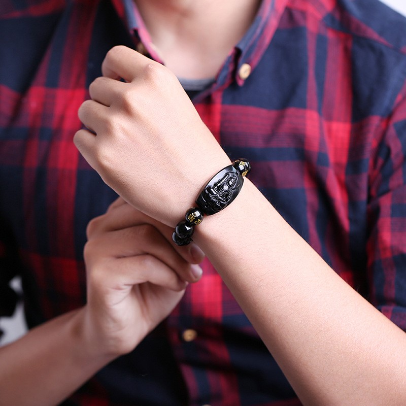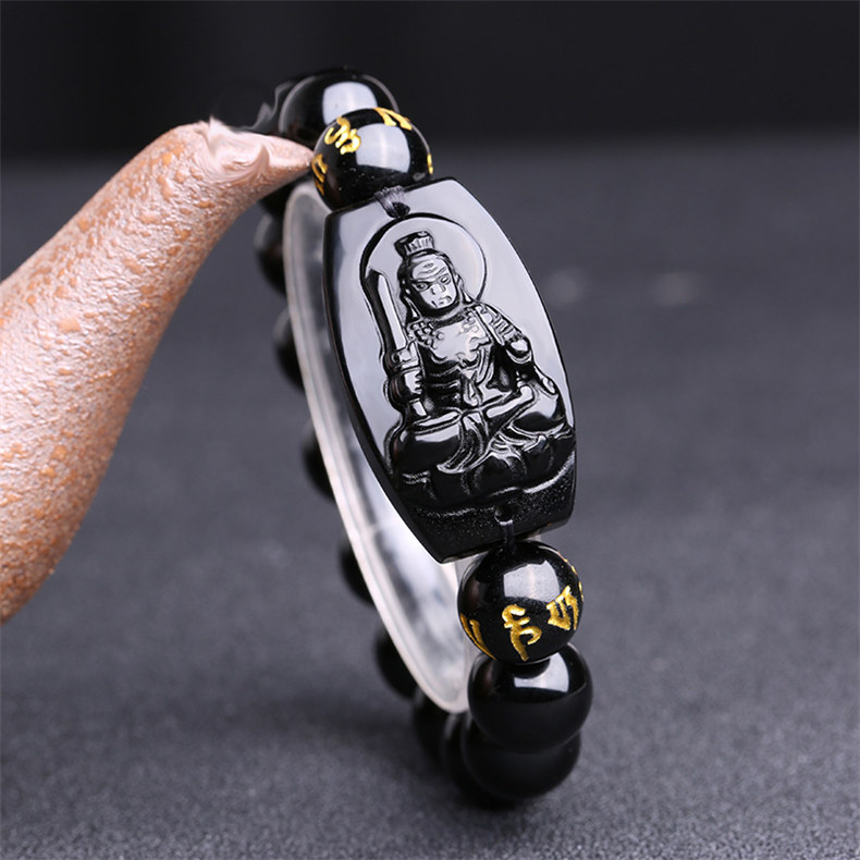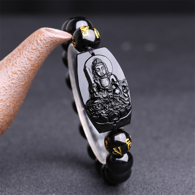 生肖守護 | 十二生肖本命佛手鍊 | 天然烏金黑曜石 | 精細立體微雕 | 天然墨西哥黑曜石生肖本命佛守護神男女水晶黑曜石手鍊