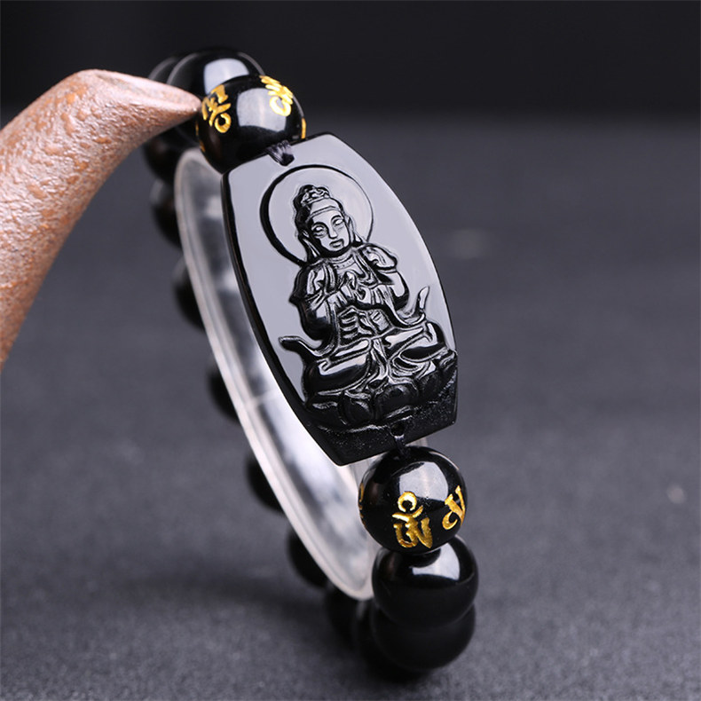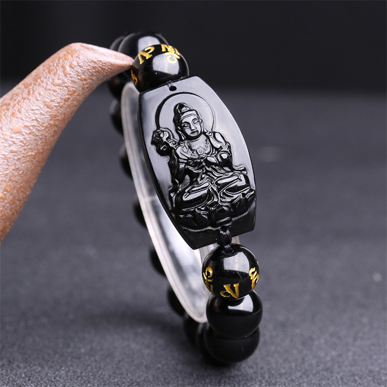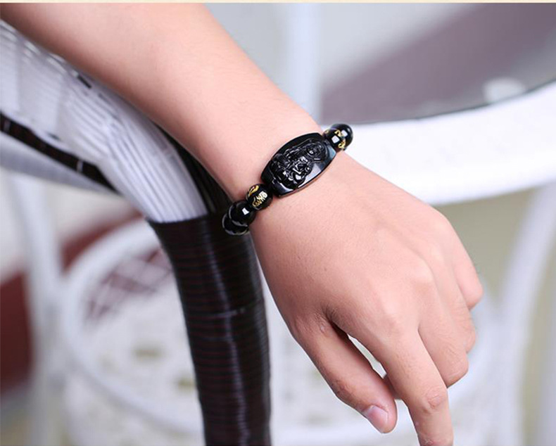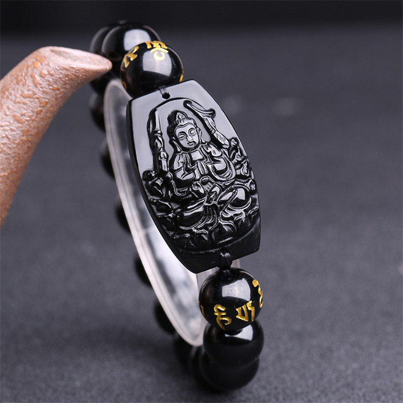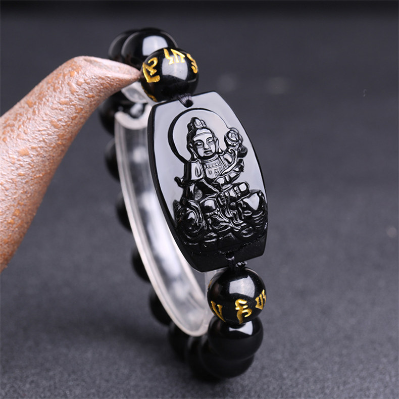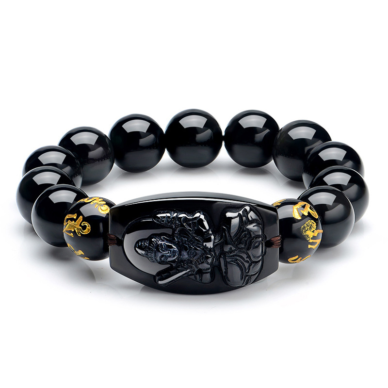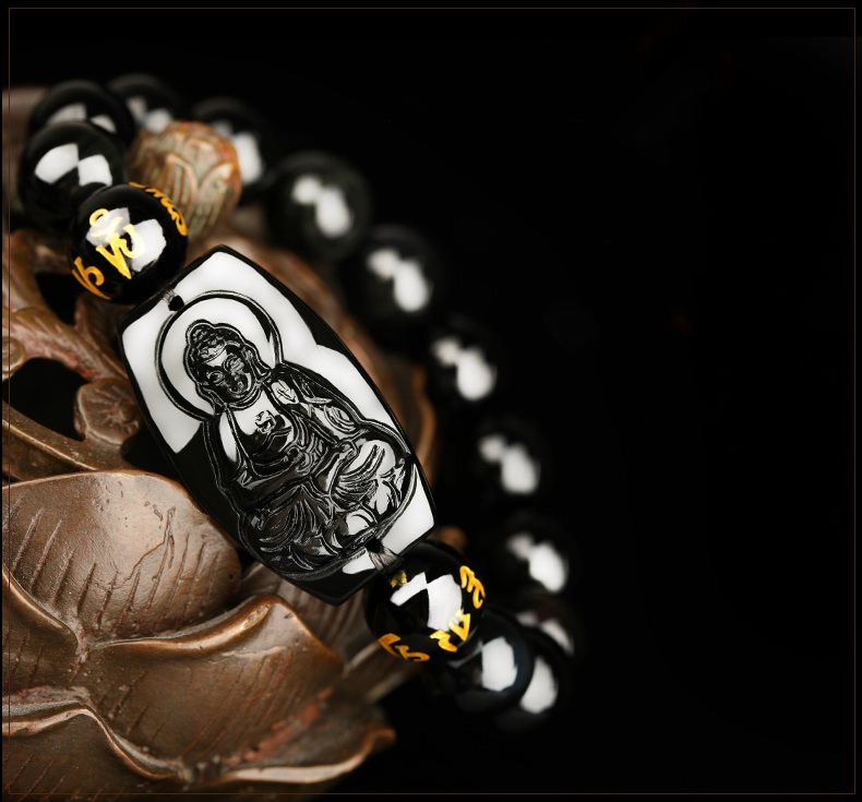 生肖守護 | 十二生肖本命佛手鍊 | 天然烏金黑曜石 | 精細立體微雕 | 天然墨西哥黑曜石生肖本命佛守護神男女水晶黑曜石手鍊
