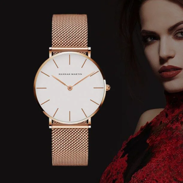 OL小資女手錶 | 日本精工天馬渡機芯 | 米蘭尼斯玫金網帶 | 30米防水 | HANNAH MARTIN氣質鋼網帶纖薄防水小資OL女士防水腕錶