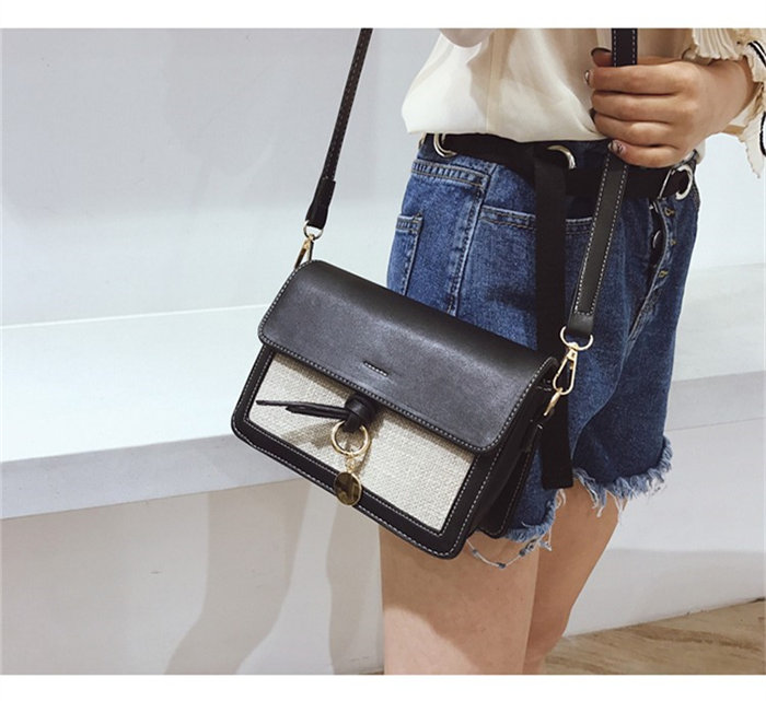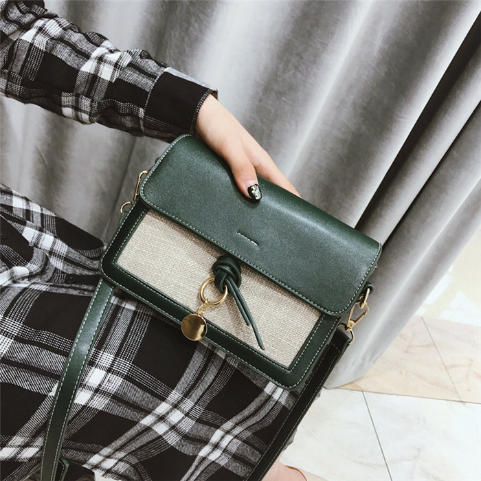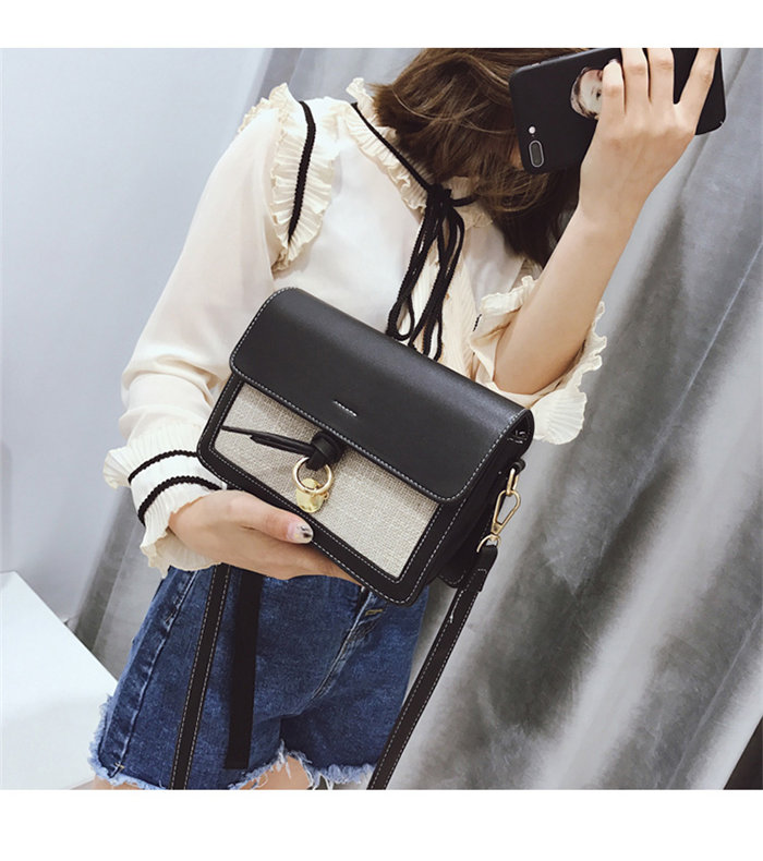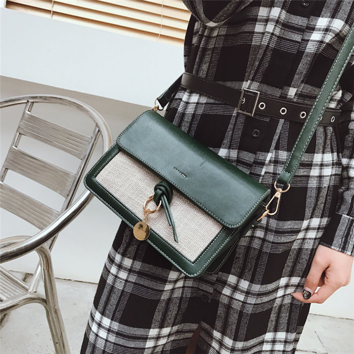 【簡約日系】氣質素雅日系秋冬新款金屬圓環裝飾精緻肩背斜背小方包