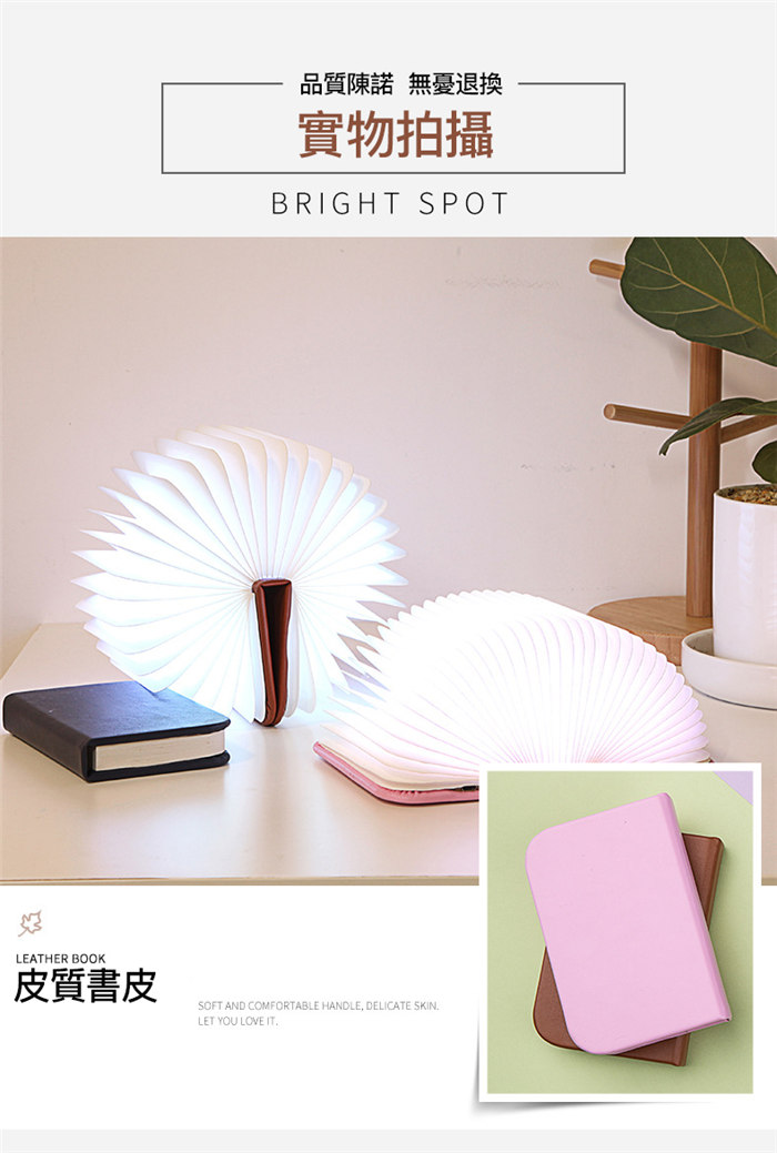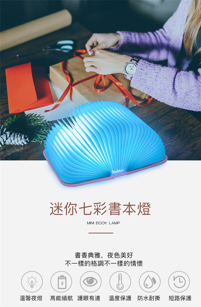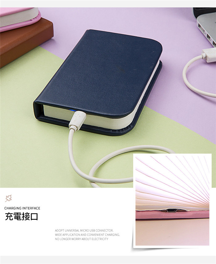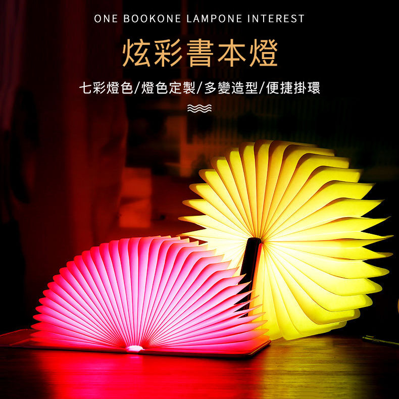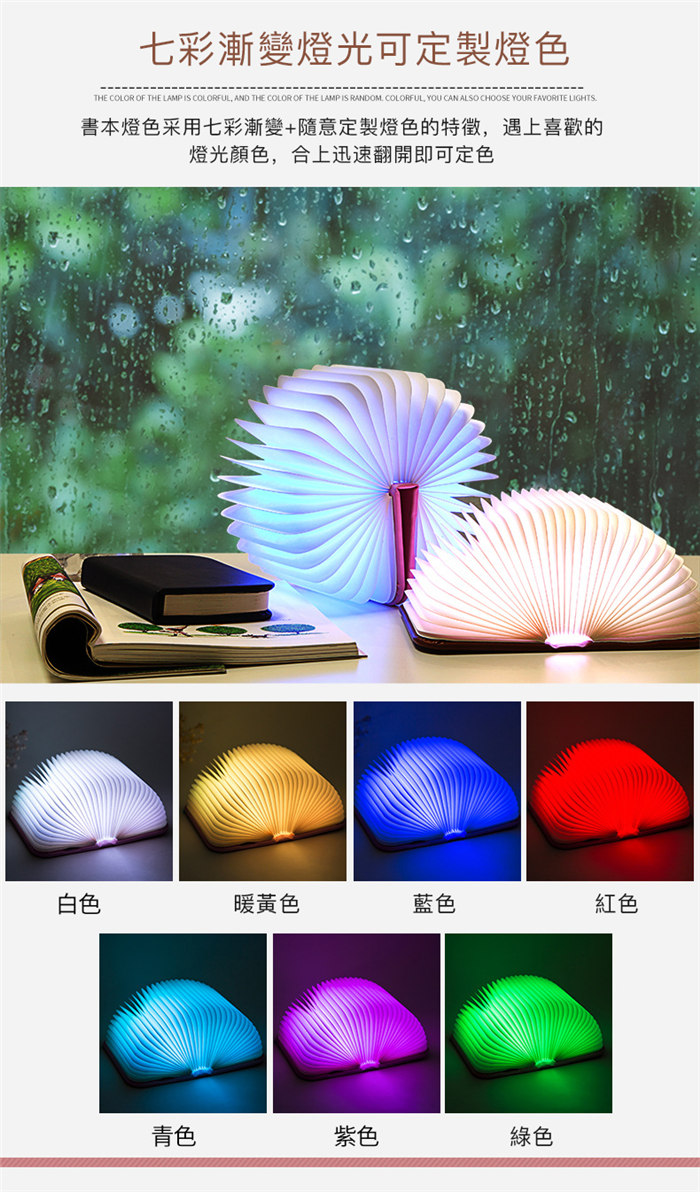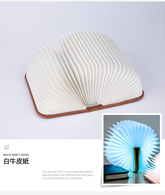 【七彩合頁書本燈】【USB充電】創意個性實用男女生日禮物七彩可定色牛皮紙書本燈