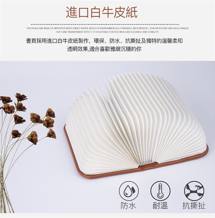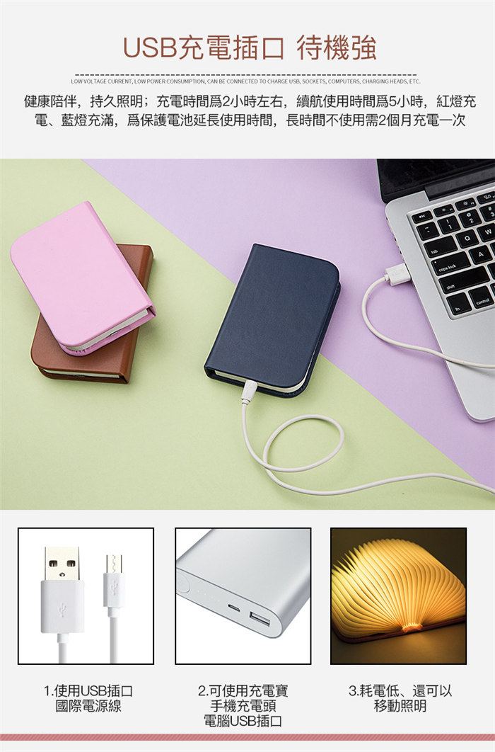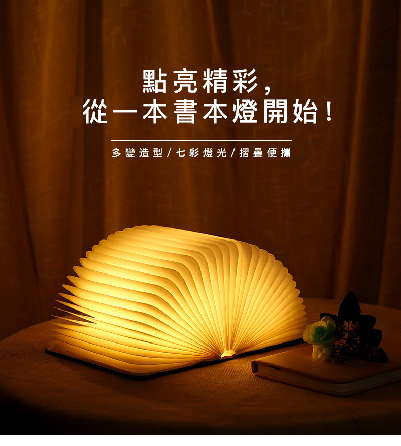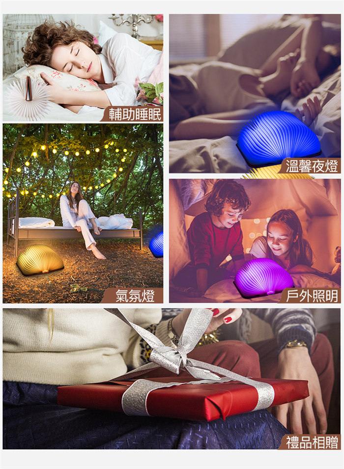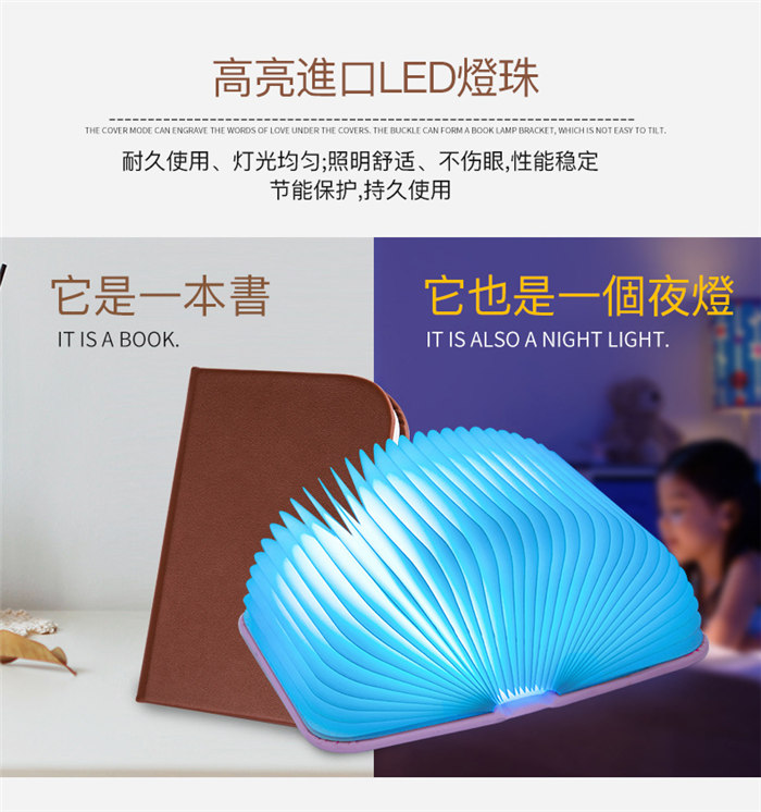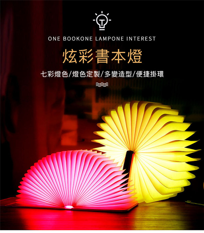 【七彩合頁書本燈】【USB充電】創意個性實用男女生日禮物七彩可定色牛皮紙書本燈
