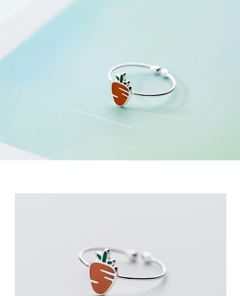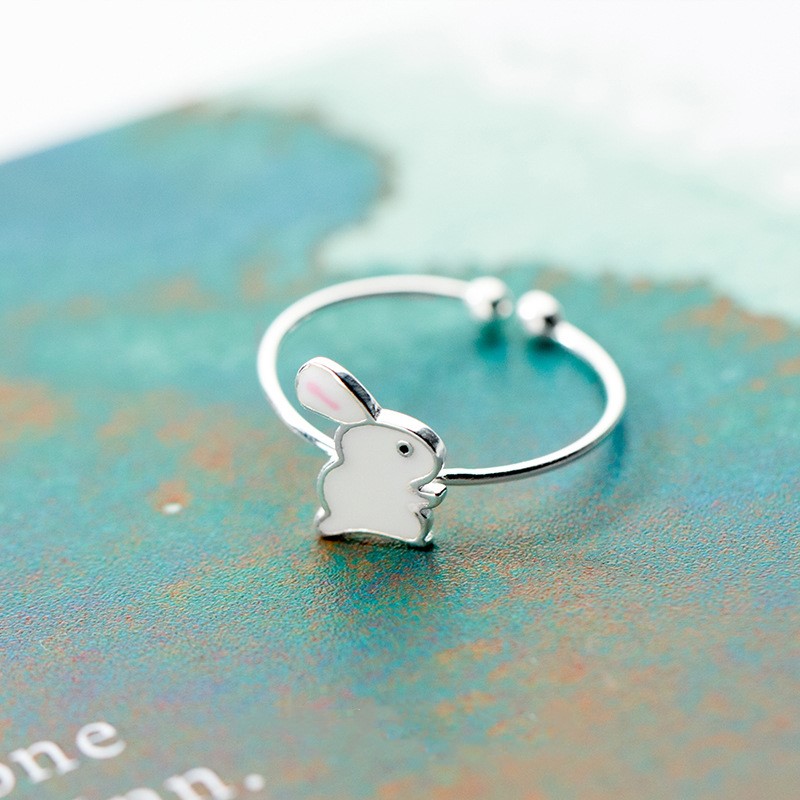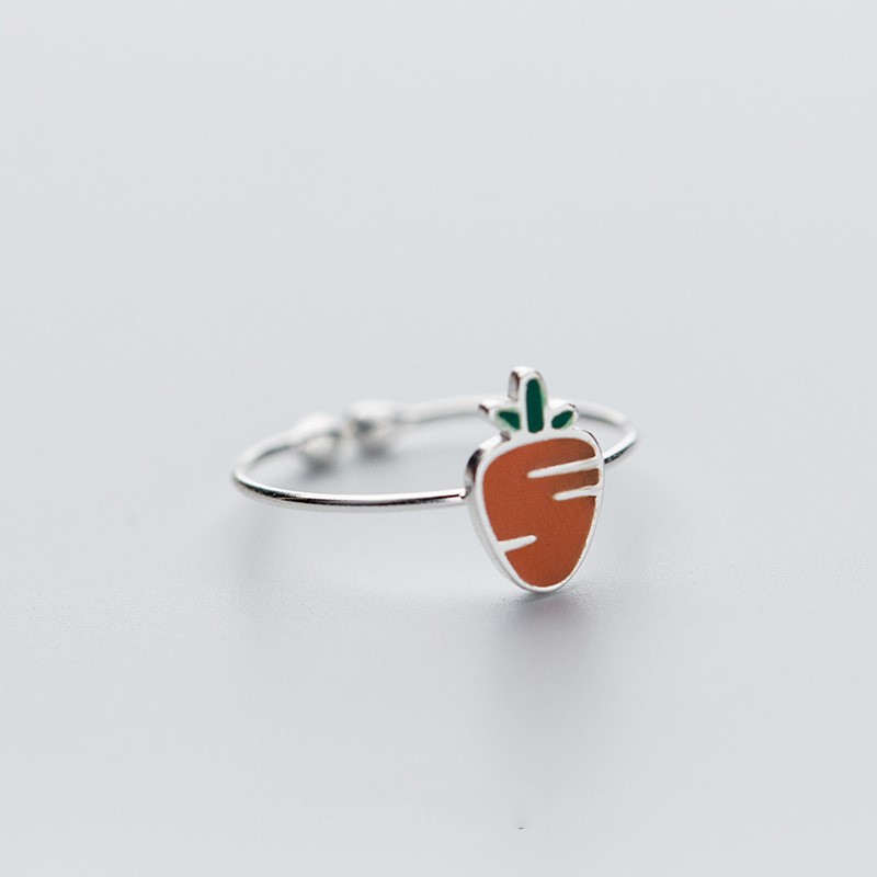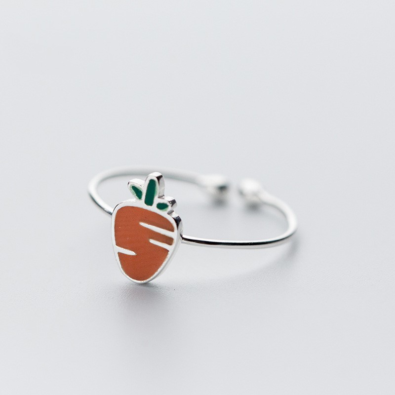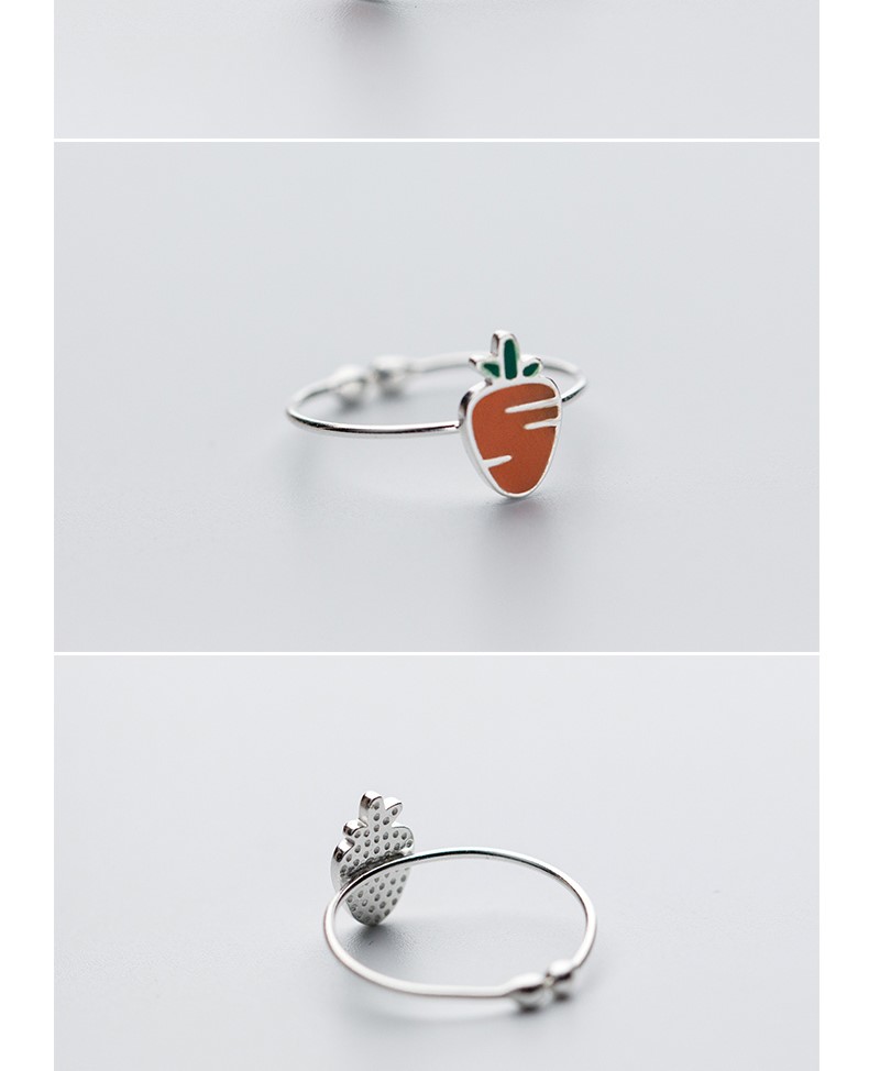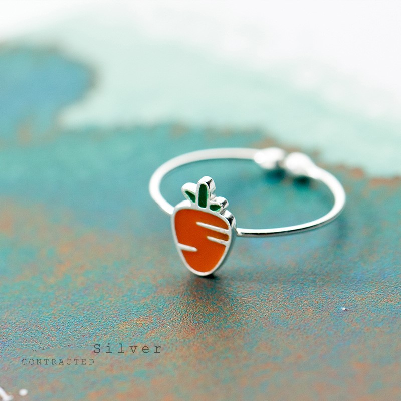 【小白兔與胡蘿蔔】韓國超可愛小白兔與胡蘿蔔925純銀情侶閨蜜開口戒指
