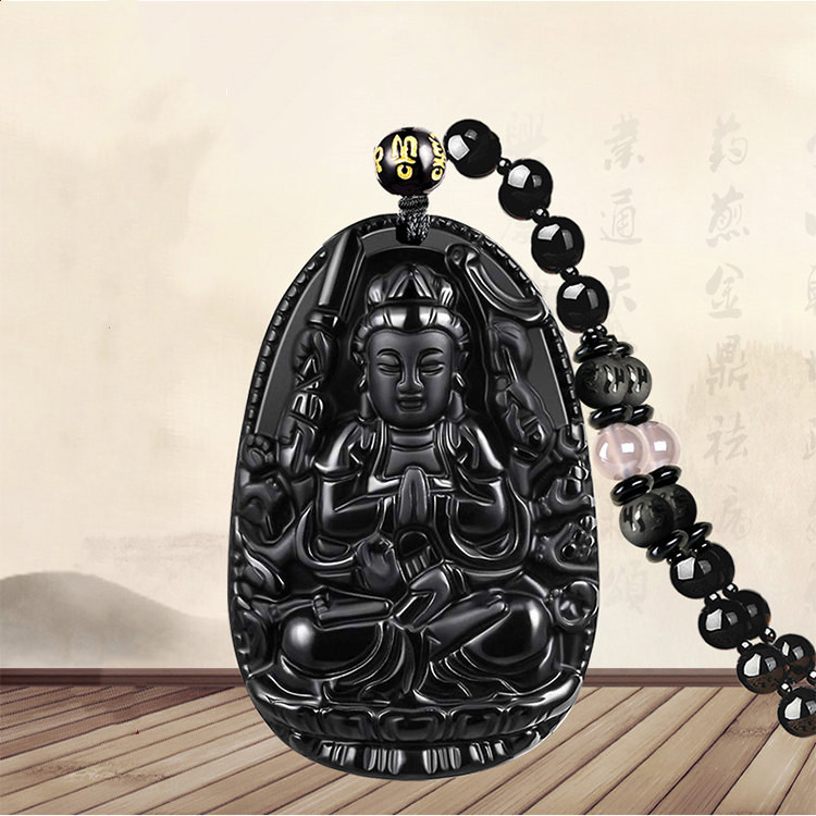 【招財護主】【生肖鼠觀世音菩薩】6A頂級天然烏金黑曜石十二生肖本命佛守護神吊墜項鍊