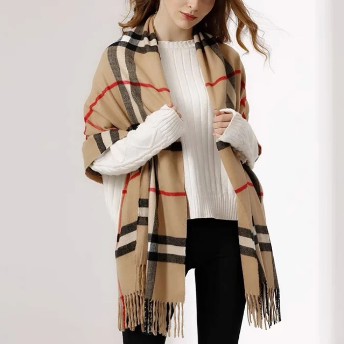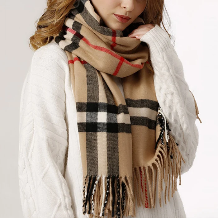 經典格紋羊毛混紡圍巾 | 鉑金級喀什米爾羊絨 | 加大加寬可做披肩 | 超高品質澳洲鉑金級喀什米爾羊絨厚實親膚保暖方格流蘇圍巾披肩