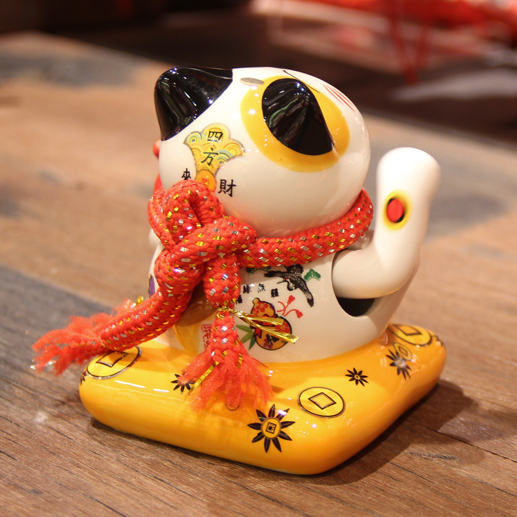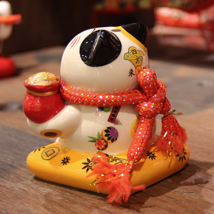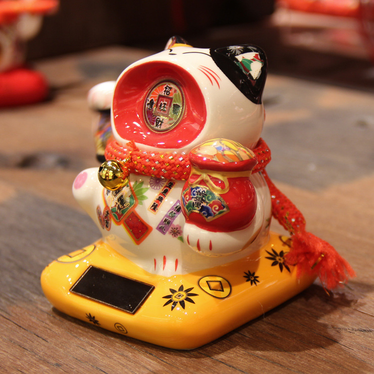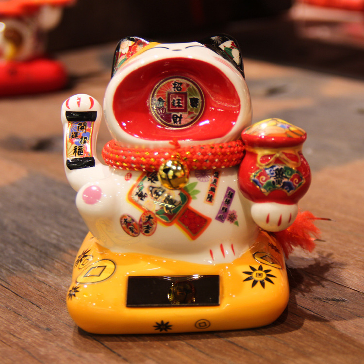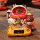 【太陽能搖手招財貓】【中小號】純手工製彩繪陶瓷日式大口納財吸金太陽能搖手招財貓 (10*9*11cm)