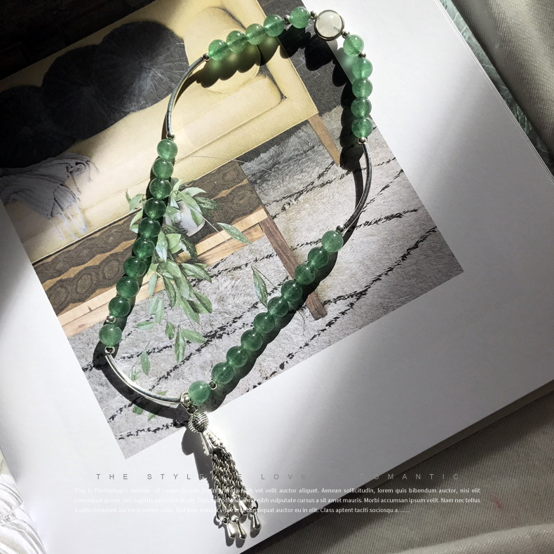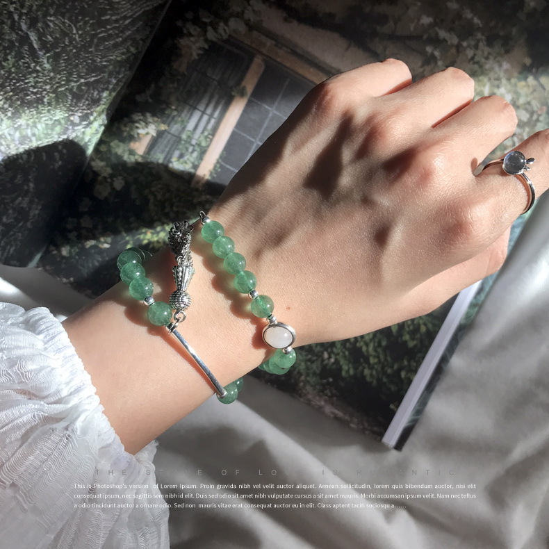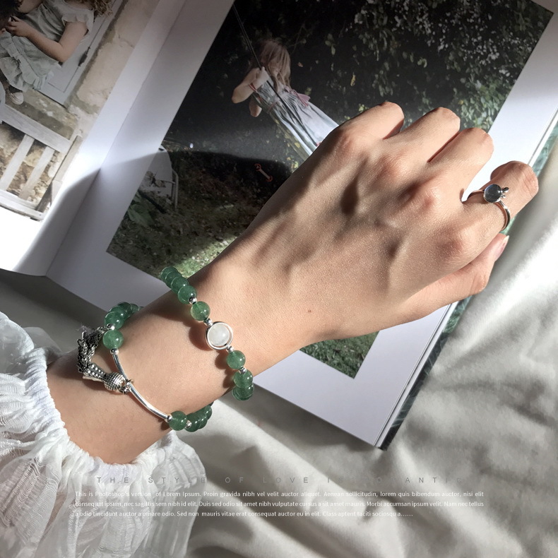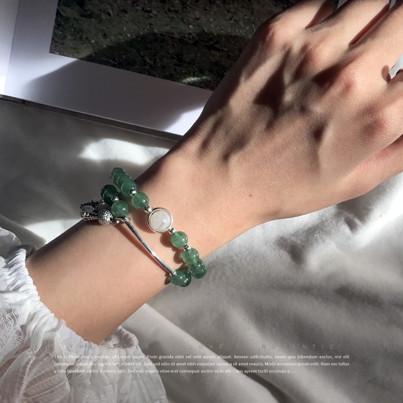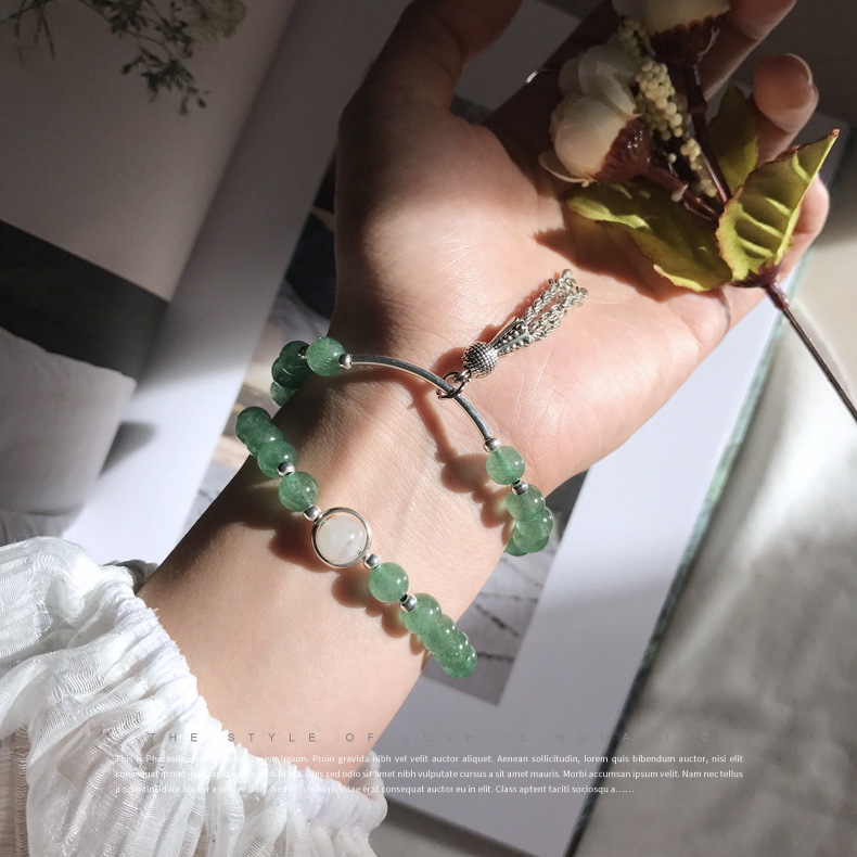 【綠草莓晶手鍊】【925純銀】【清新氣質】原創設計溫柔優雅稀有天然6A級綠草莓晶925銀雙圈水晶手鍊