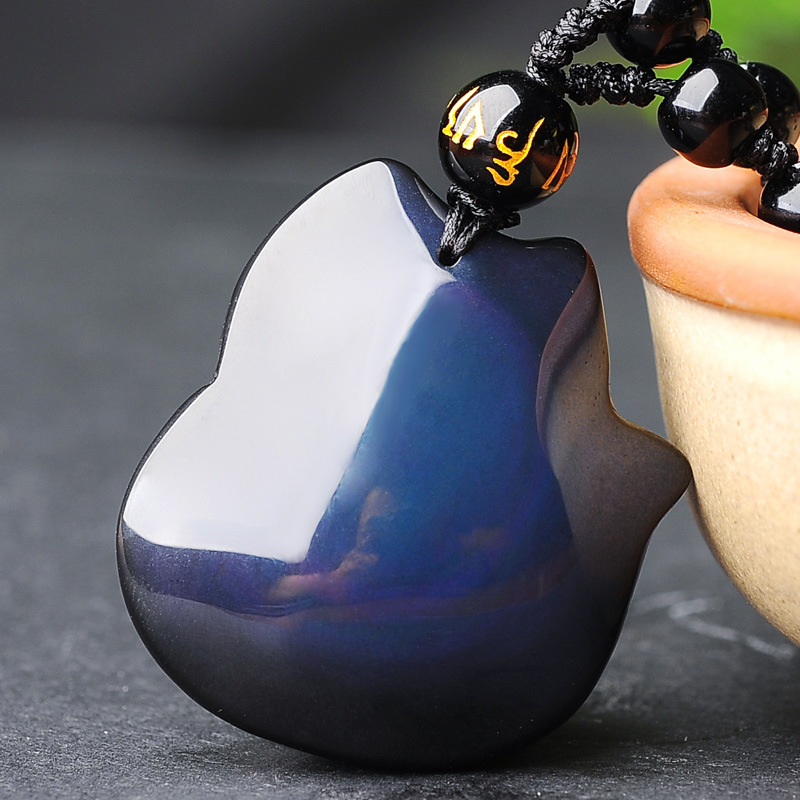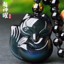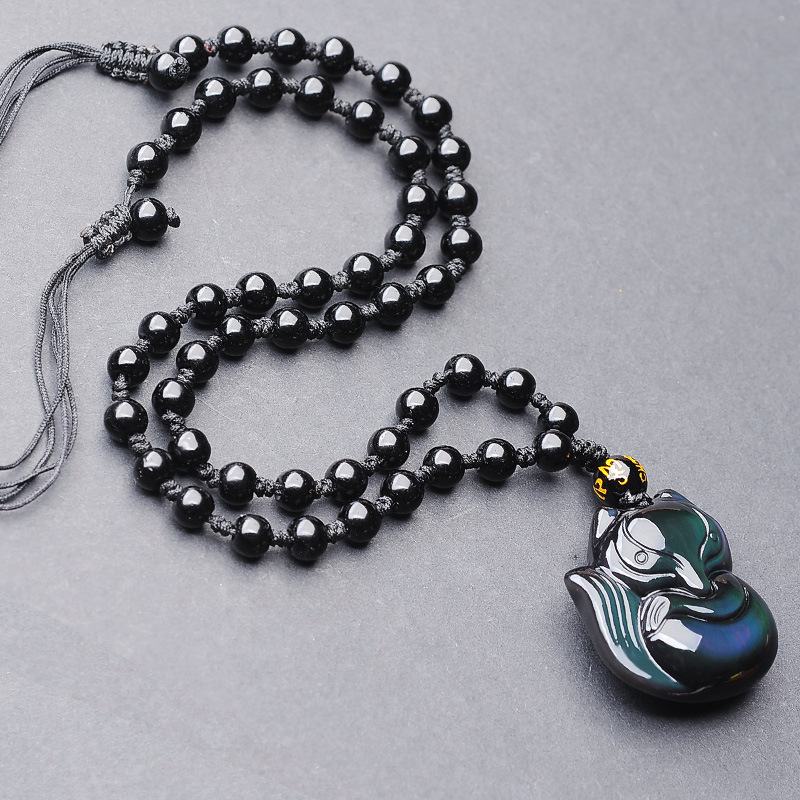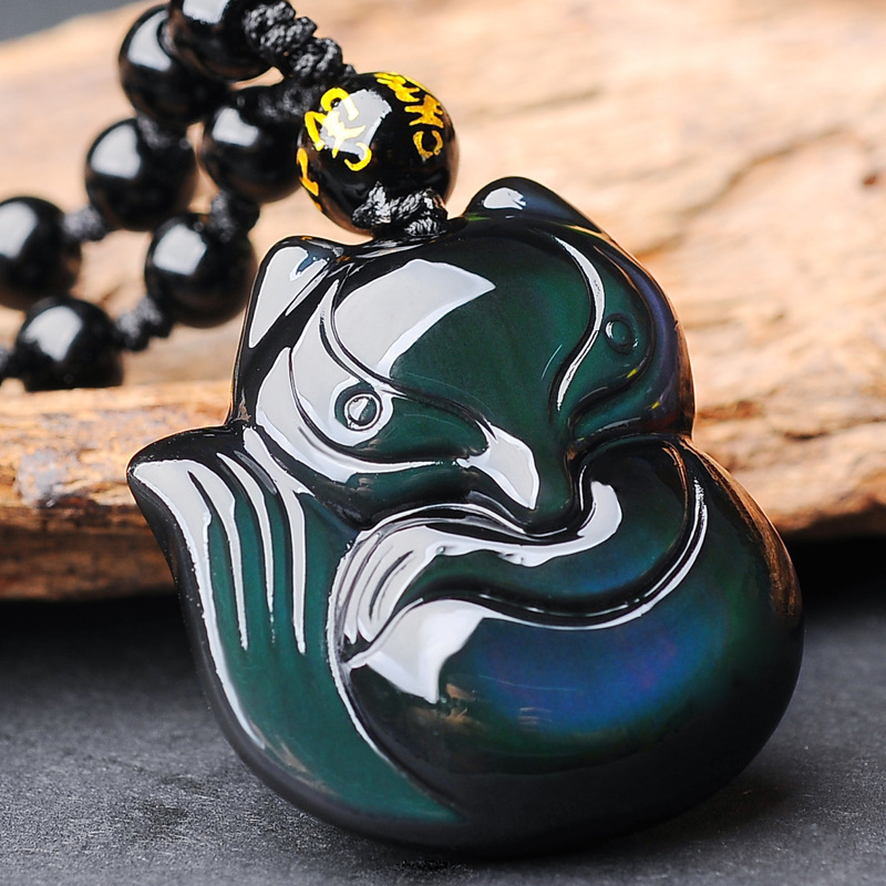 【姻緣靈狐吊墜項鍊】【彩虹黑曜石】珍品精雕墨西哥6A級彩虹黑曜石靈狐吊墜項鍊