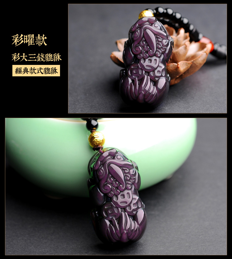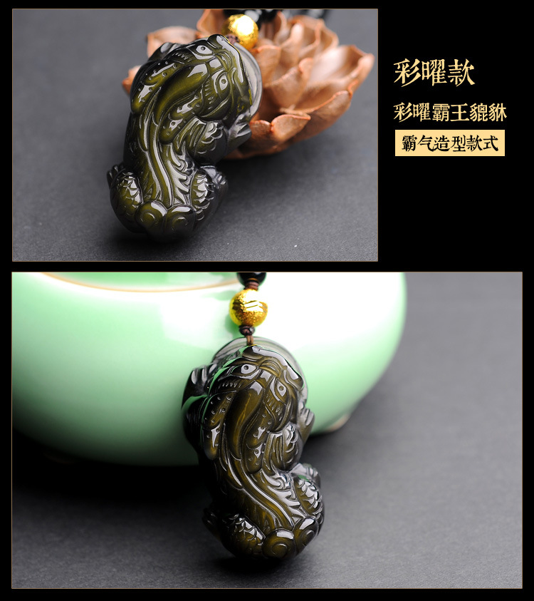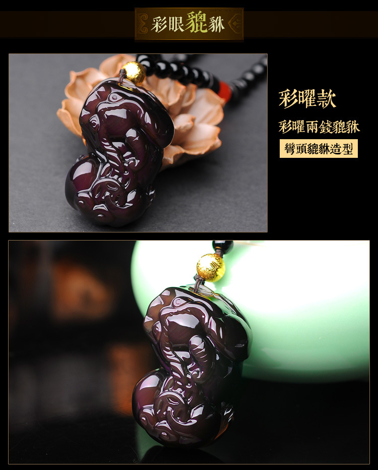 | 商品名稱 | 彩虹冰種黑曜石貔貅吊墜項鍊 |