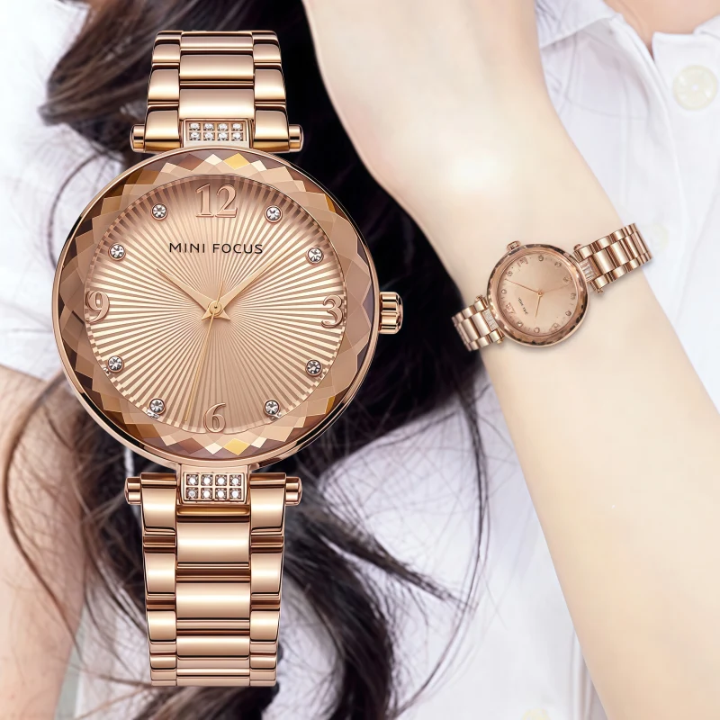 女錶・盛裝舞會 | 鑽石切割立體錶盤 | 日本高級石英機芯 | 米蘭玫金鋼帶 | 閃耀鑲鑽刻度 | 30米防水 | MINI FOCUS華麗宮廷女士手錶