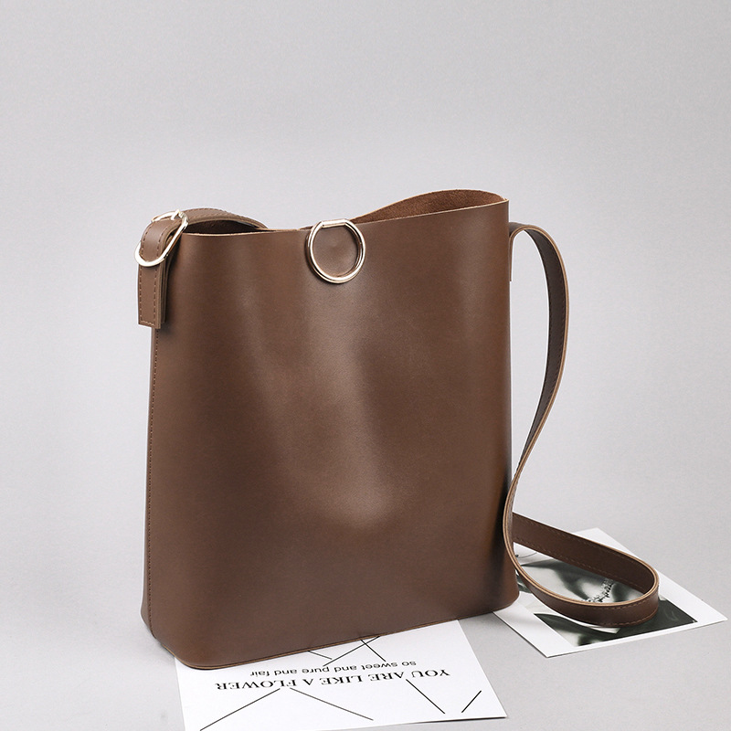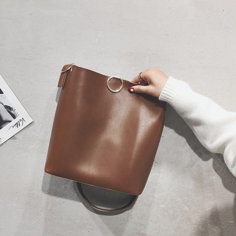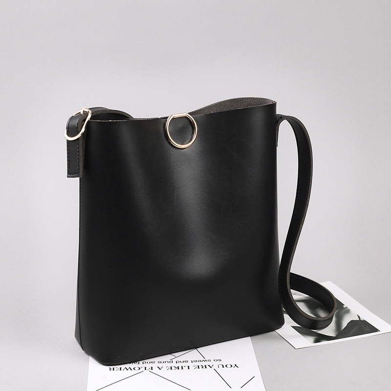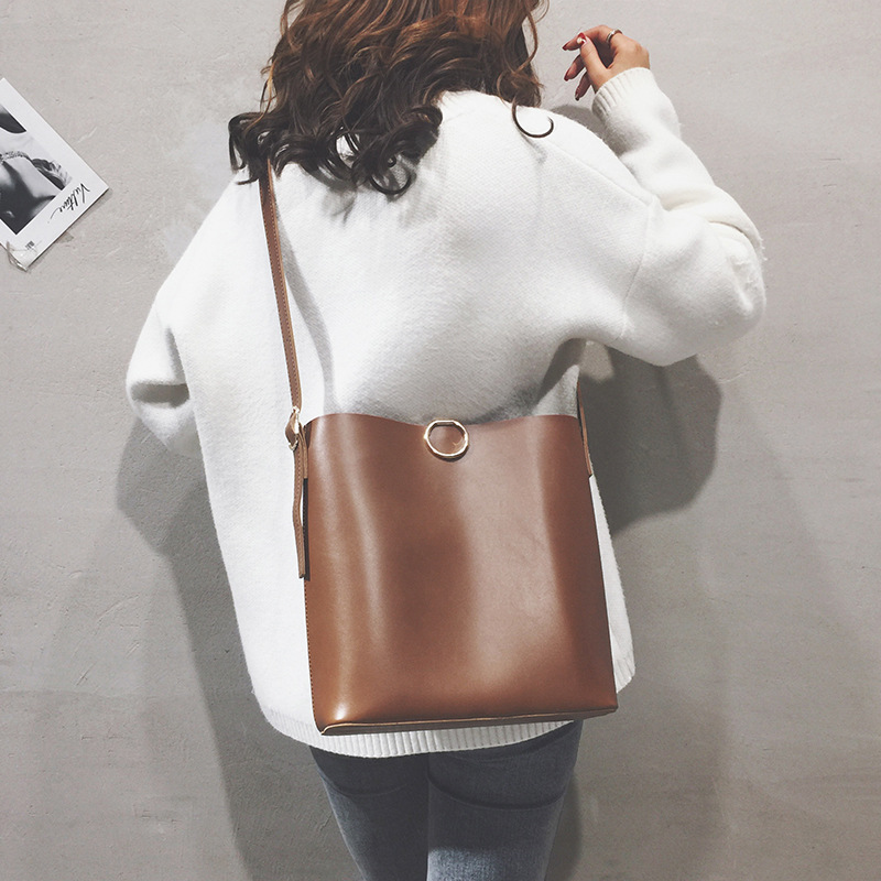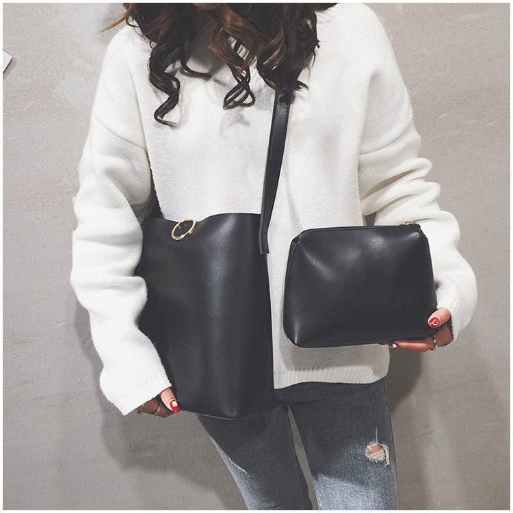 子母包水桶包純色大包包女新款個性百搭子母包水桶包休閑斜背側背包