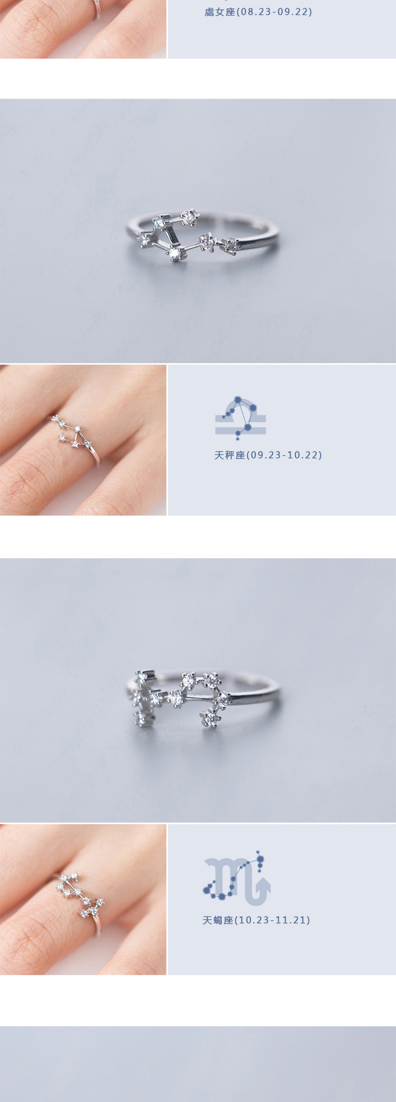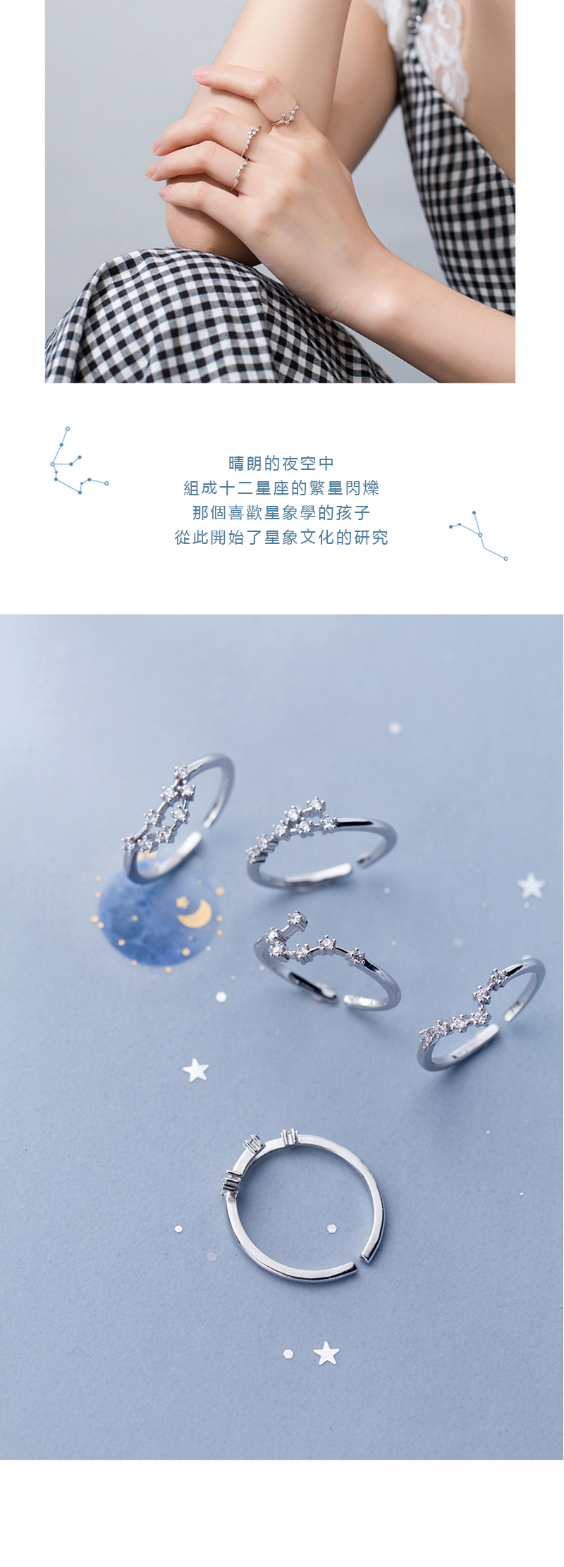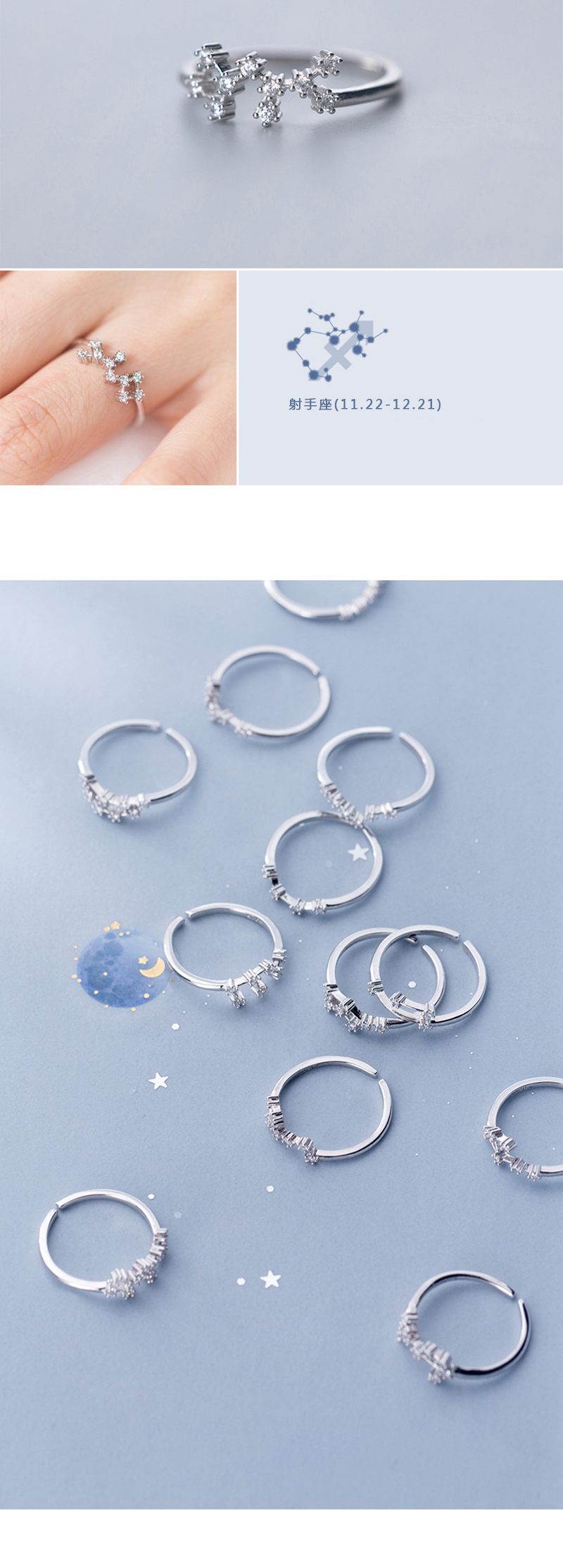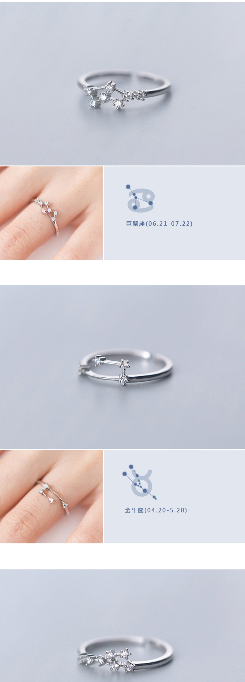 【十二星座守護戒指】【S925純銀】設計師款簡約個性S925純銀鑲鑽女戒開口單戒