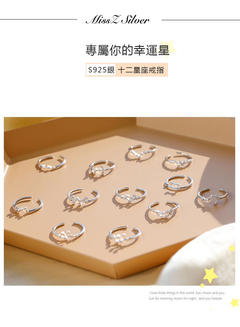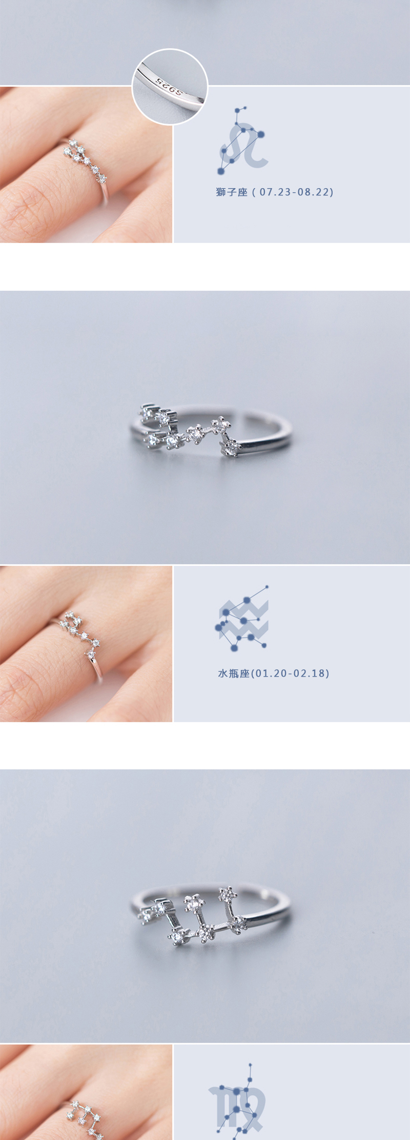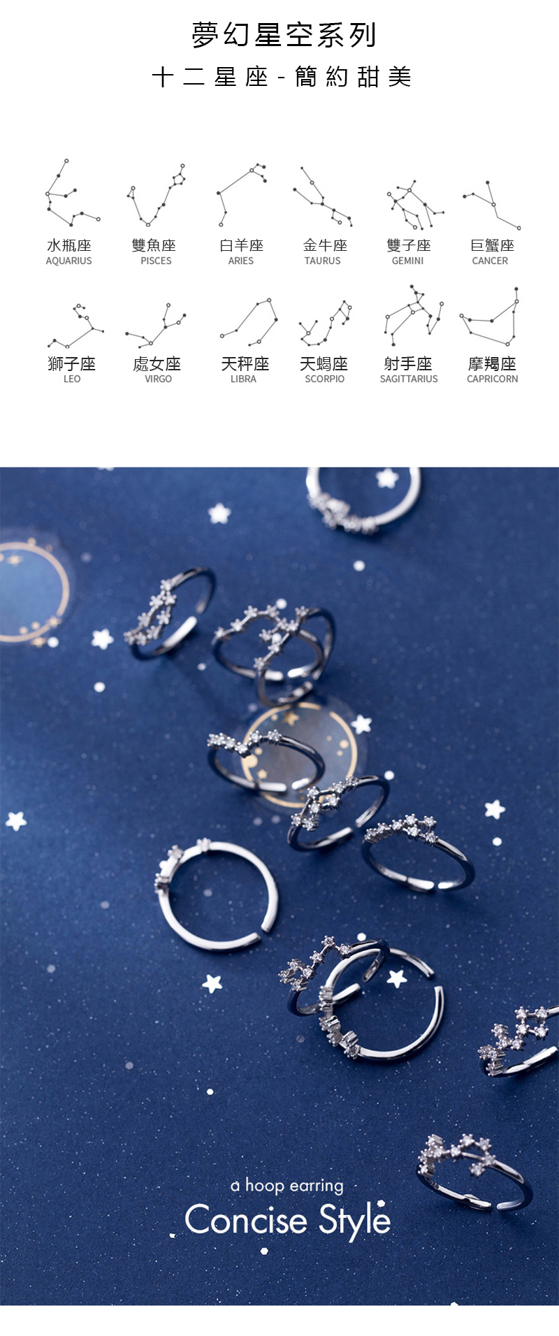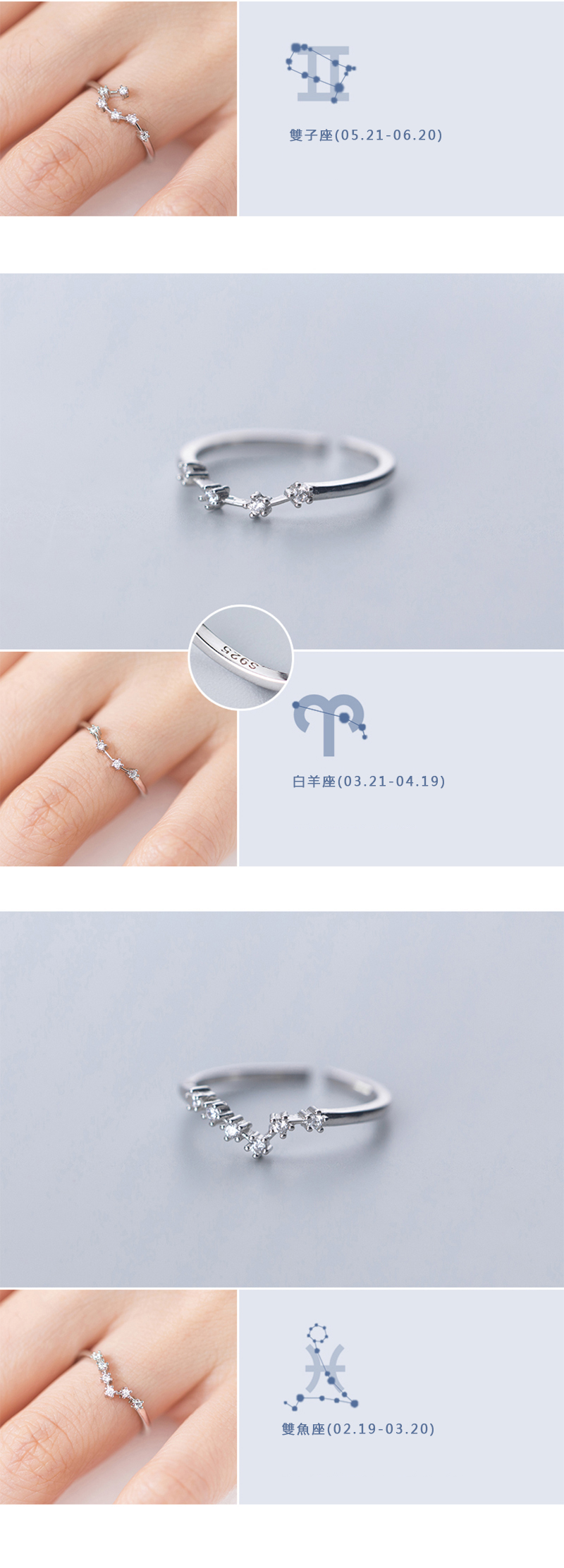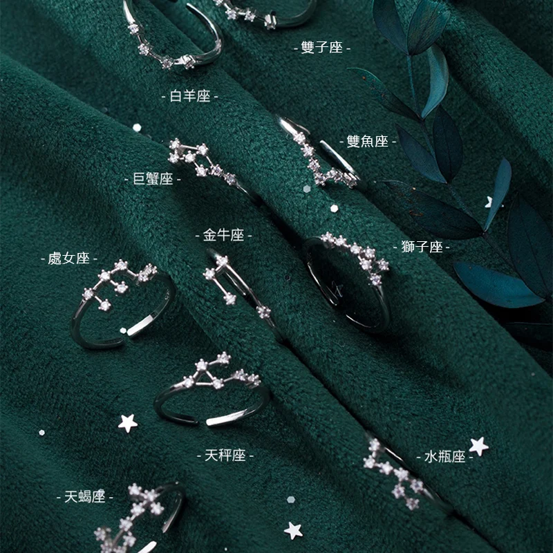 【十二星座守護戒指】【S925純銀】設計師款簡約個性S925純銀鑲鑽女戒開口單戒