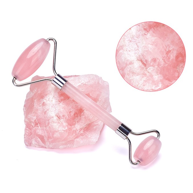 【粉晶臉部按摩器】【臉部舒壓】原創設計天然馬達加斯加粉晶臉部按摩滾輪刮板套組