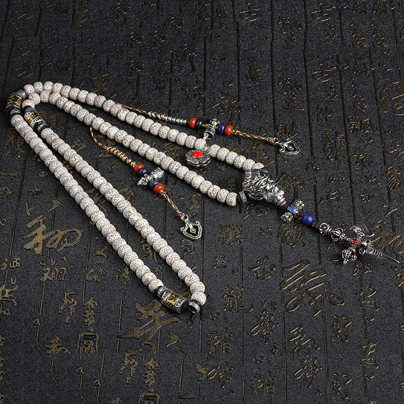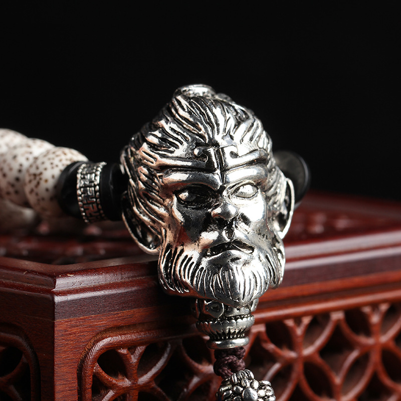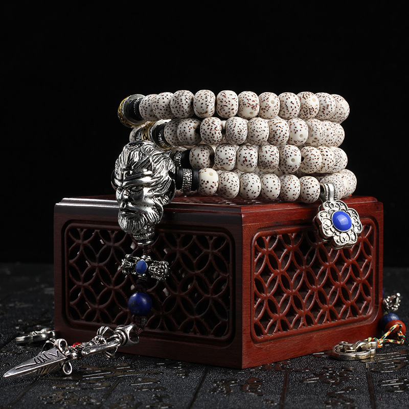 【天然海南星月菩提】【大聖降心魔吊墜】原創設計款精工108顆天然高密海南星月菩提配大聖吊墜多寶佛珠念珠手串
