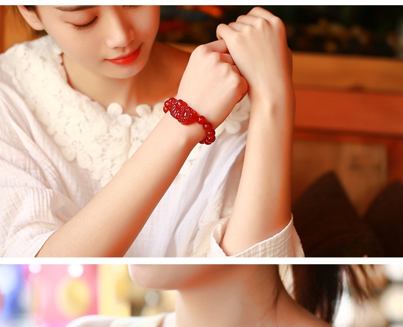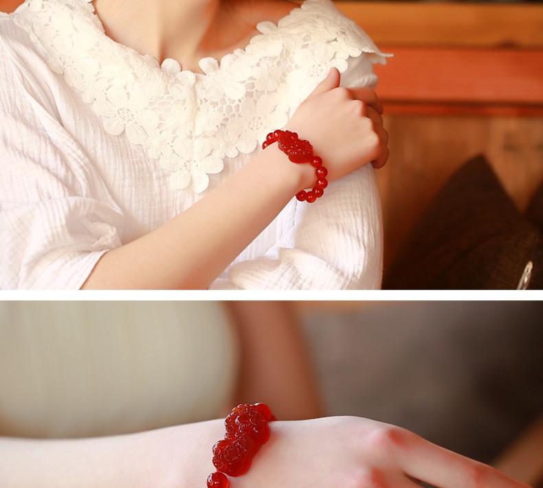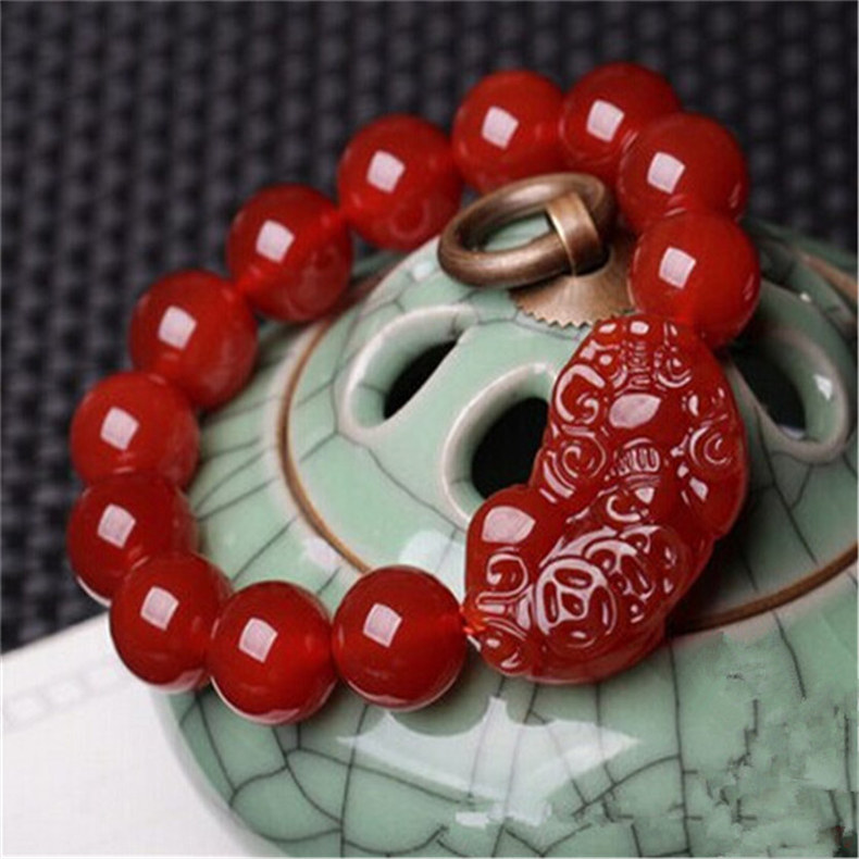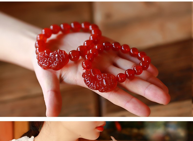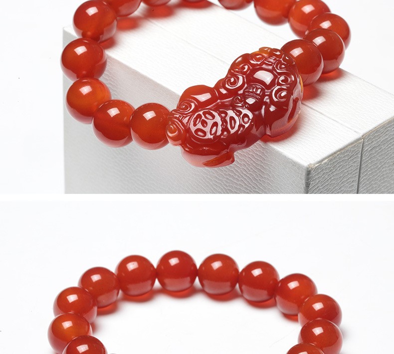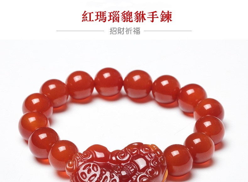 【紅瑪瑙貔貅】【平安之石】珍品收藏級紅瑪瑙貔貅手鍊招財納福辟邪開運