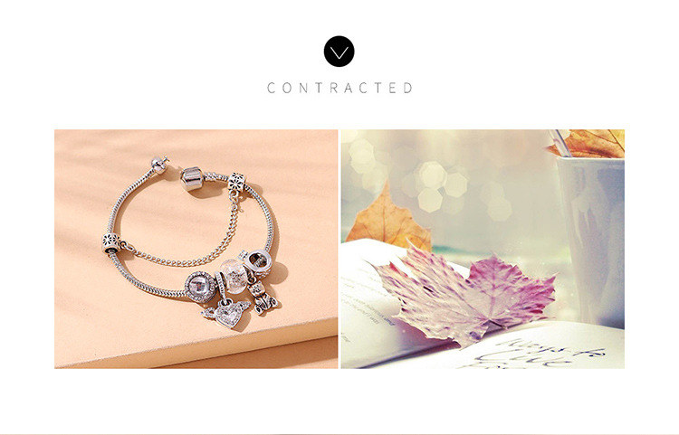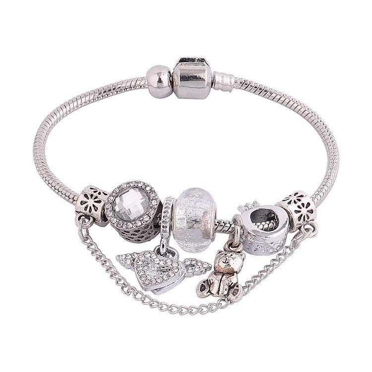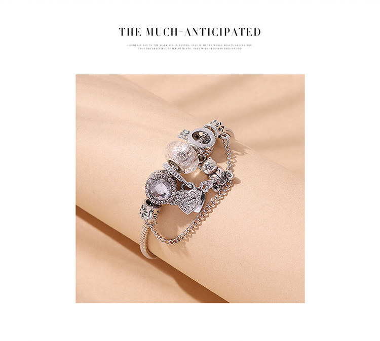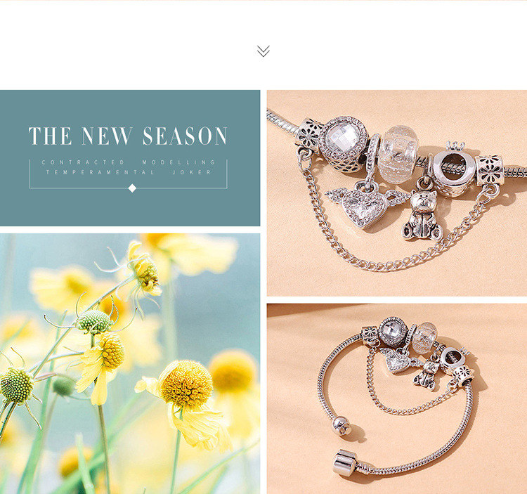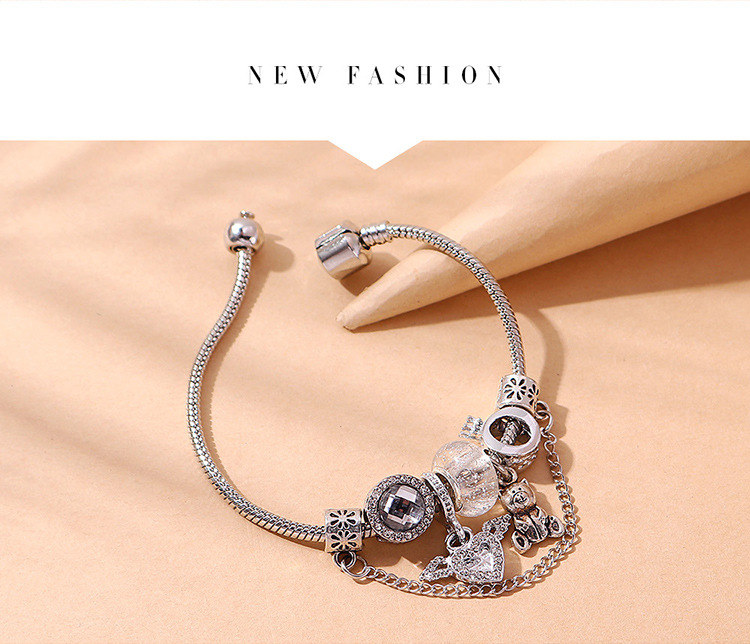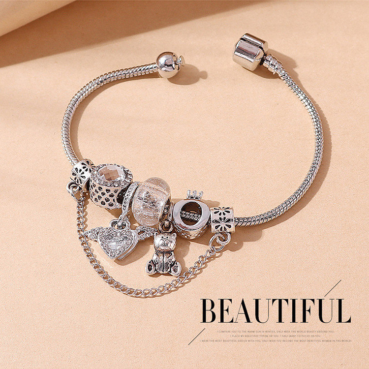 熊熊桃心翅膀皇冠水晶燈籠珠元素輕奢復古銀色手工滴膠工藝琉璃串珠可調節女串珠手鍊